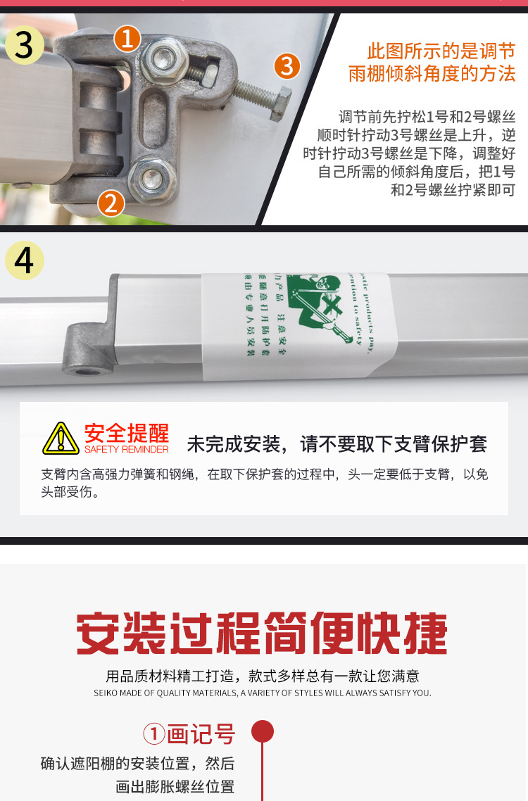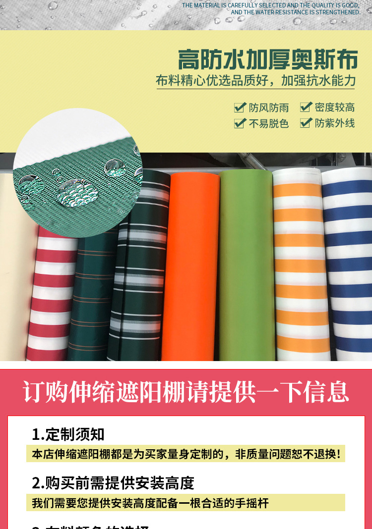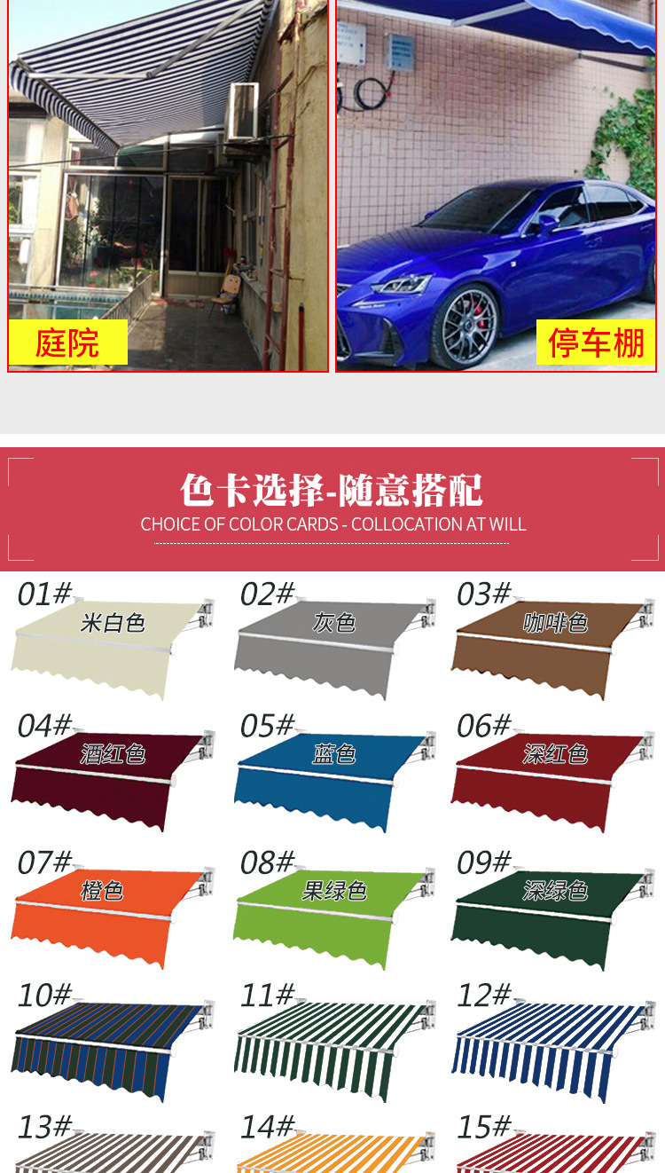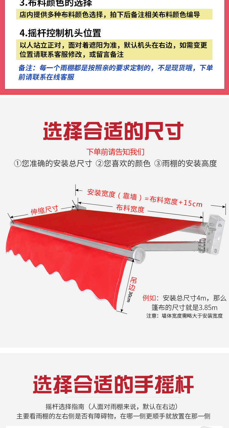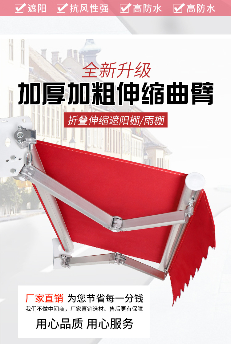海斯迪克 手摇式伸缩雨棚 1.5×2m 橙色 1个