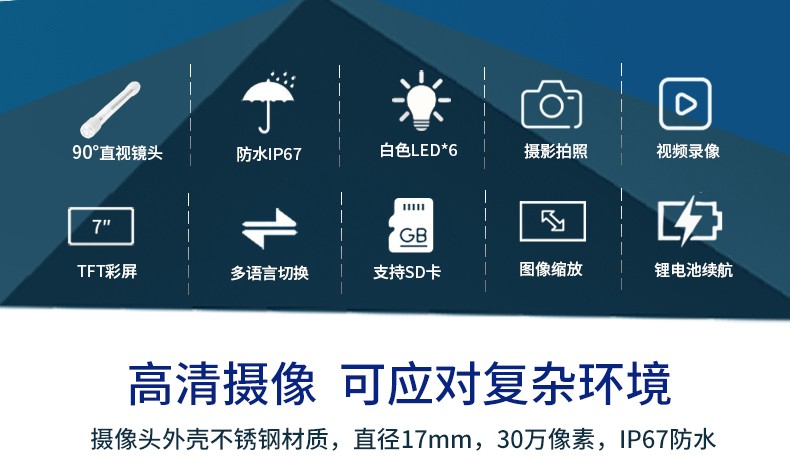 艾尼提 工业管道检测内窥镜 3R-MFXS28D30L IP67 28mm 1套