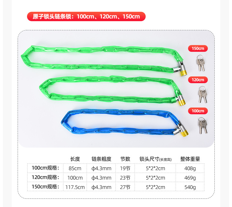 超龙 链条锁 总长约100cm粗4.3mm 1根