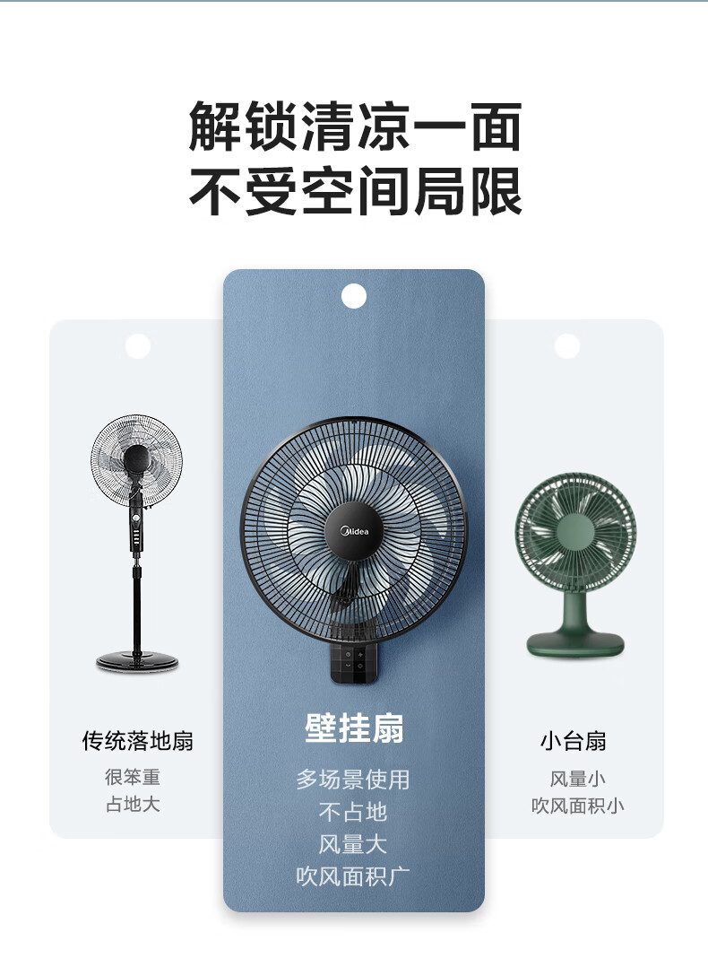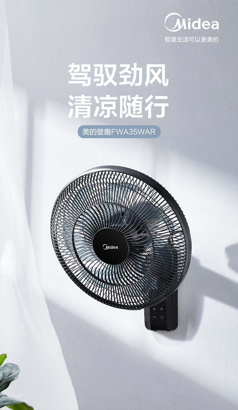 美的 壁挂式摇头转页风扇 FWA35WAR 515×428×308mm 3档 55W 220V-50Hz 1个