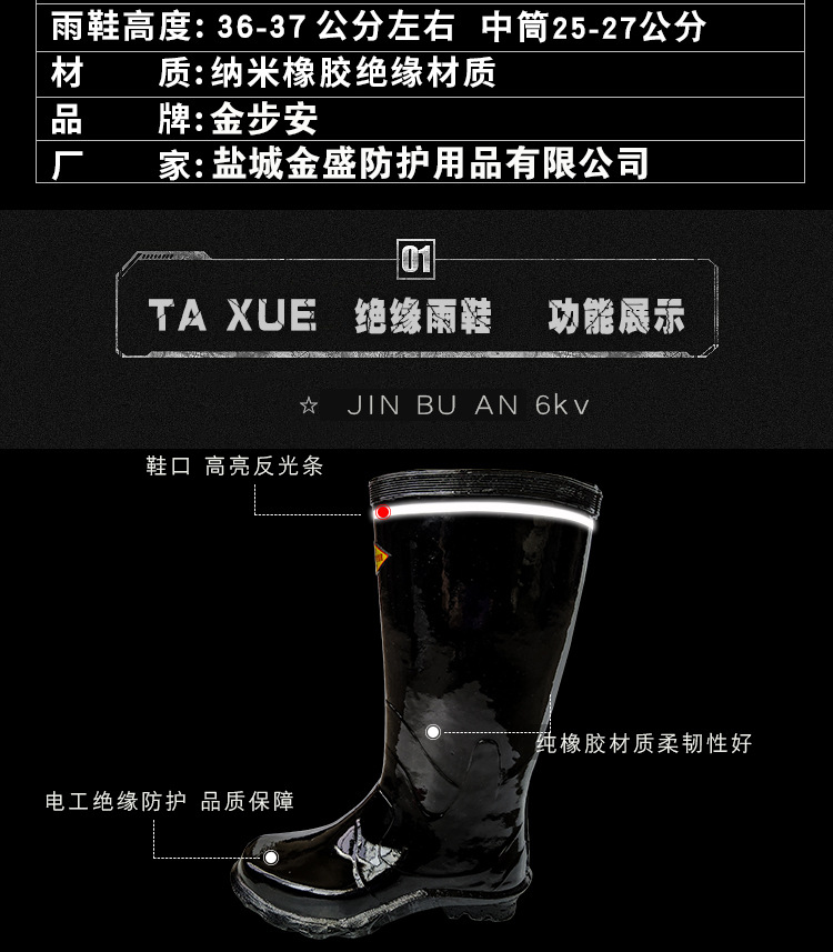金步安 高压绝缘靴 中筒 25-27cm 44码 1双
