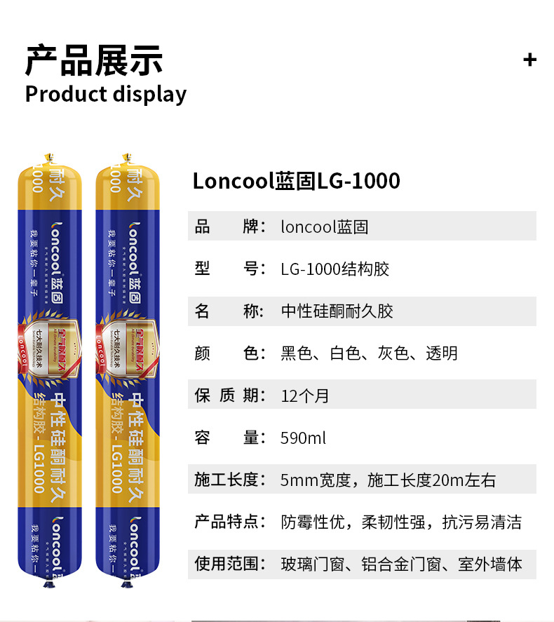 蓝固 中性硅酮结构胶 LG-1000 门窗工程专用 黑色 590mL 1支