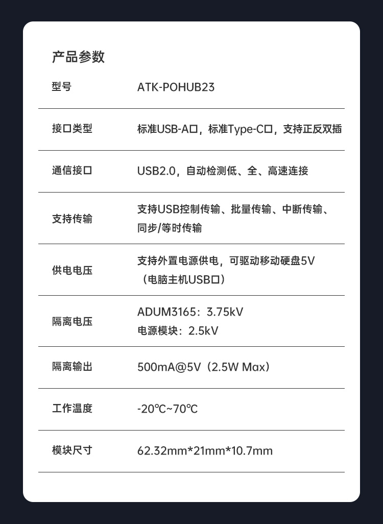 正点原子 USB2.0高速隔离器 ATK-POHUB23 HUB23工业级480Mbps光耦光电保护模块 1个