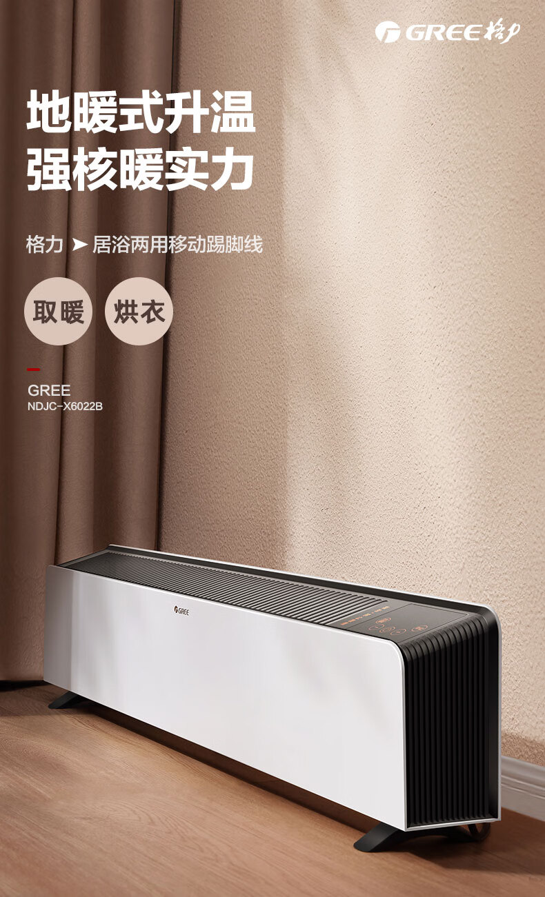 格力 踢脚线取暖器 NDJC-X6022B 落地式 2200W 1个