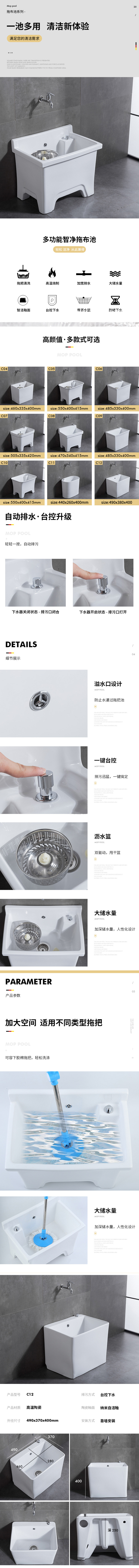 沐彼 陶瓷拖布池 C12 落地式 490*370*400mm 1个