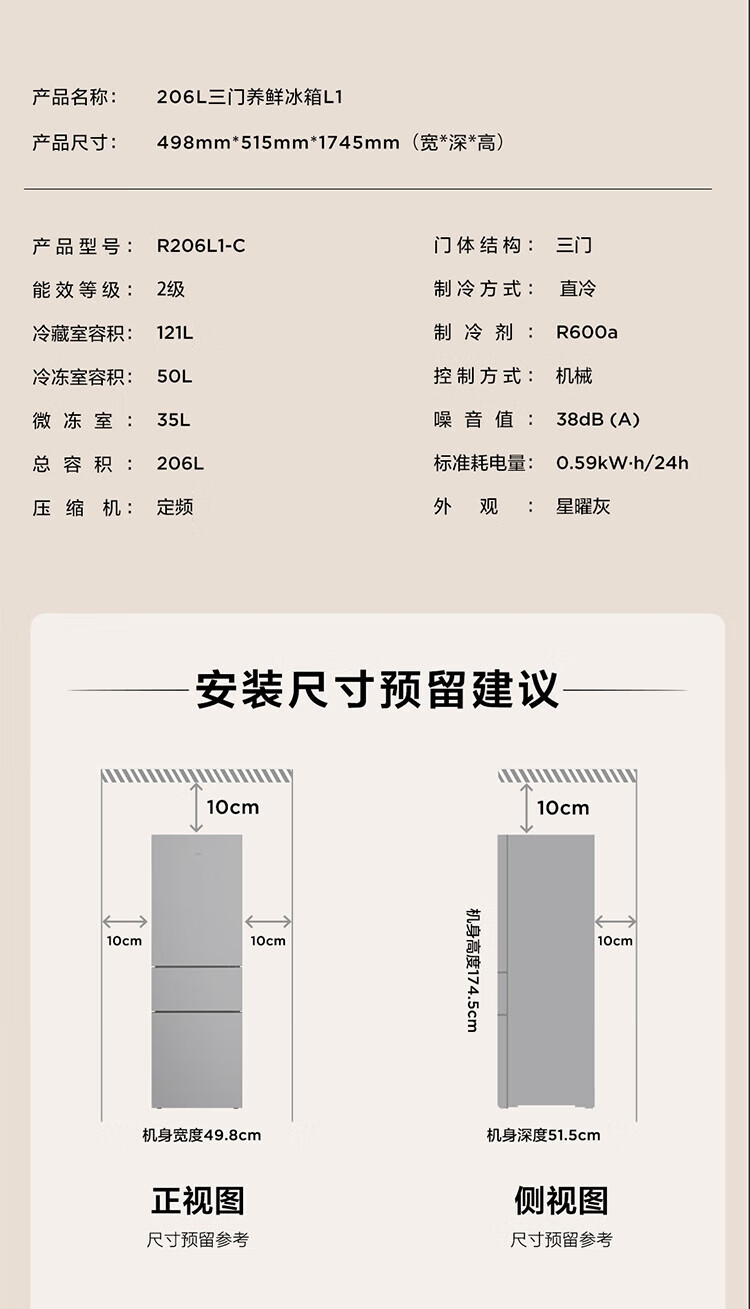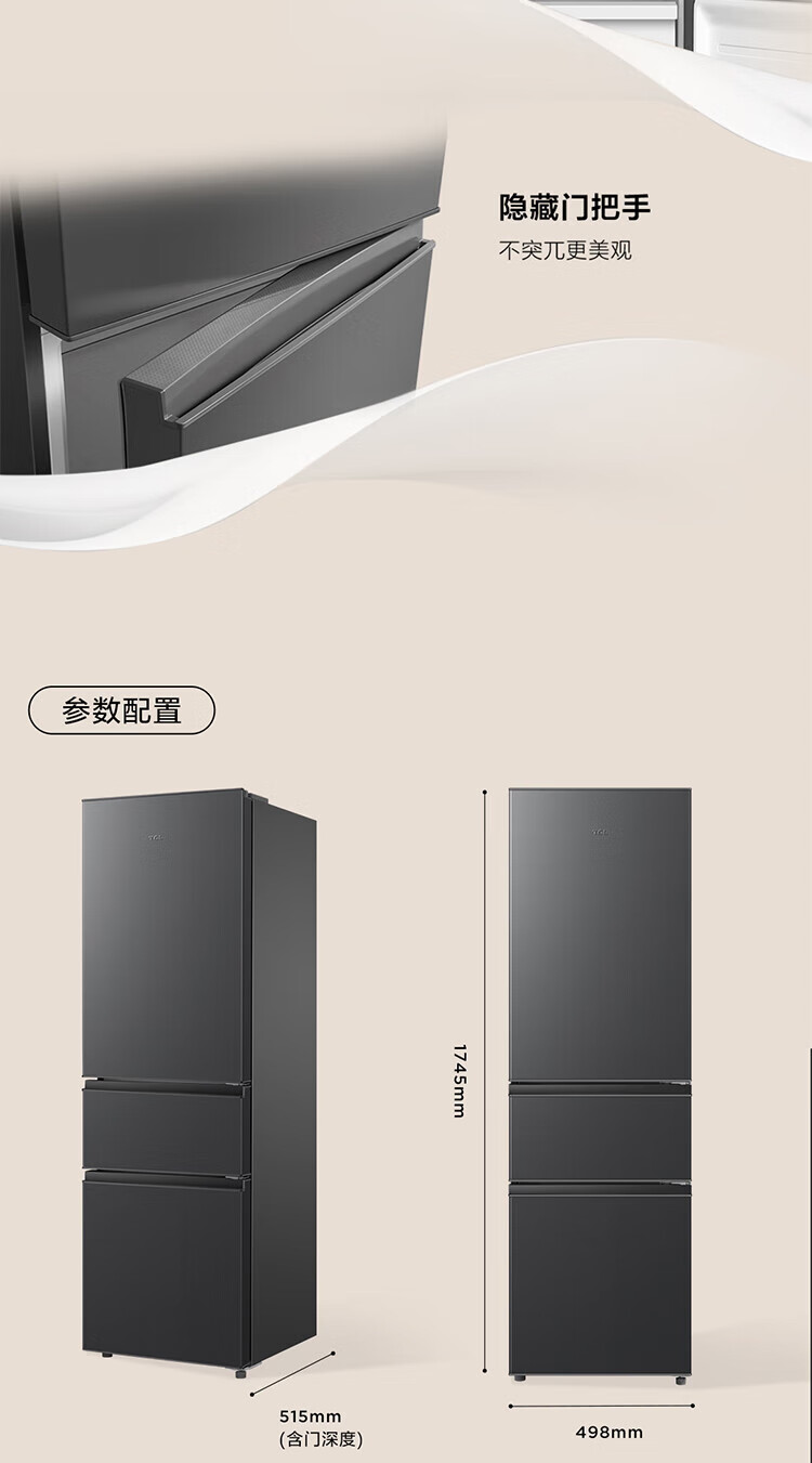 • 商品名称:TCL 三开门冰箱