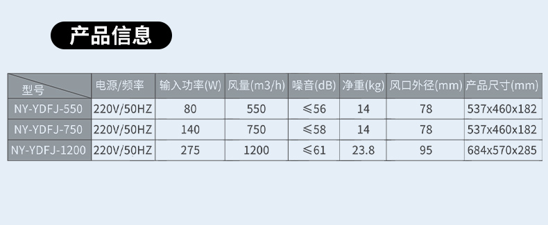 南洋有为 诱导风机 NY-YDFJ-550 220V 80W 535×460×185mm 1个