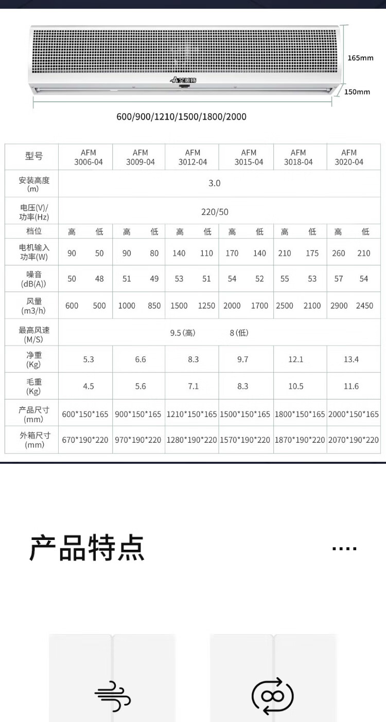 艾美特 贯流式风幕机 AFM3006-04 220V 600×165×150mm 1台