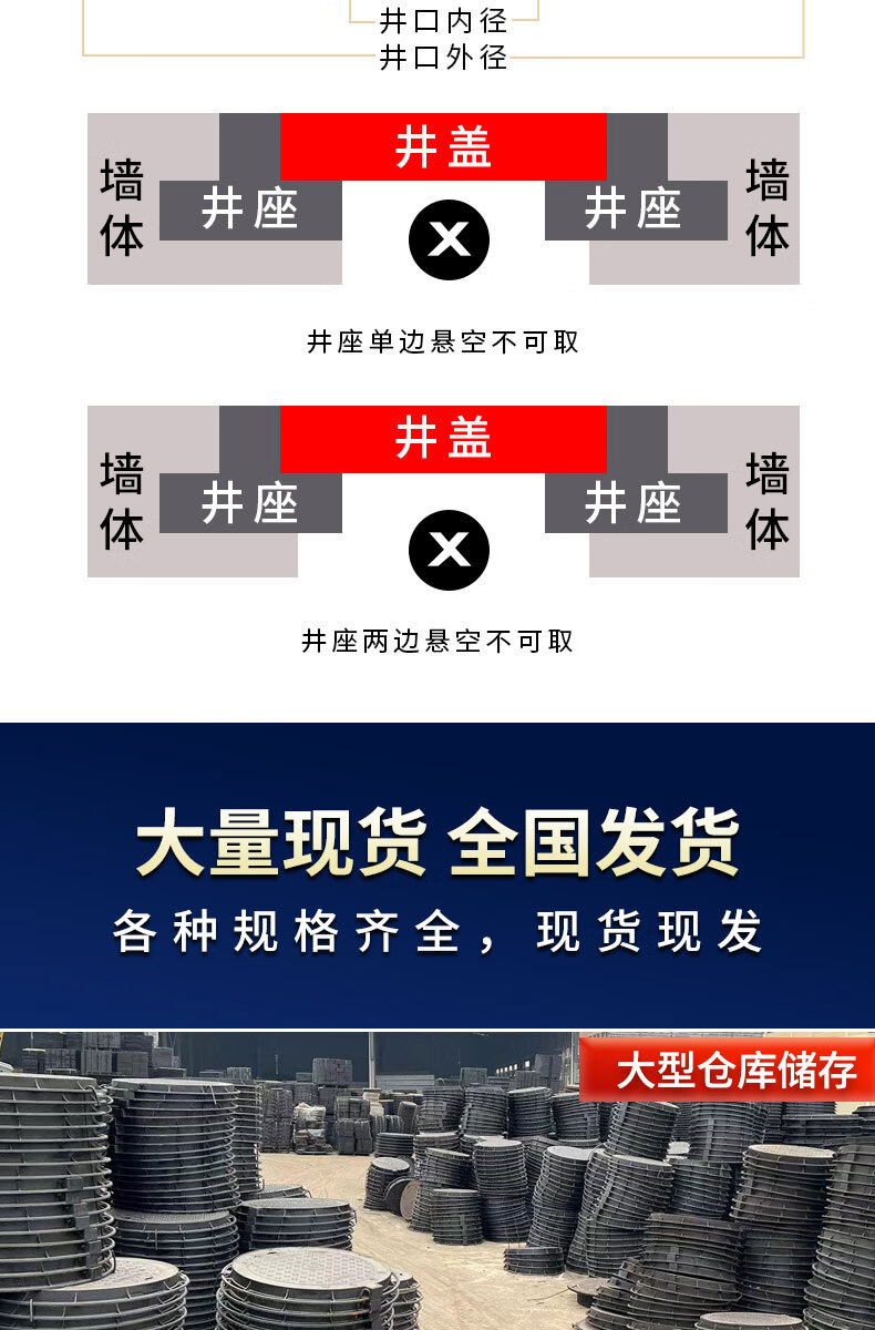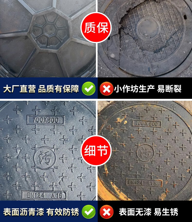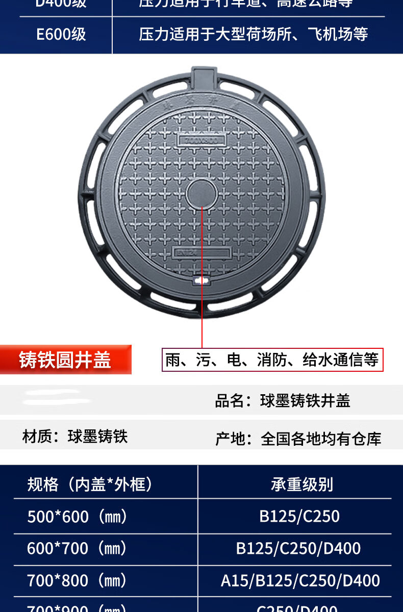海斯迪克 井盖 HKFQ-12 圆形 φ500 底座直径600mm 高50mm 1个