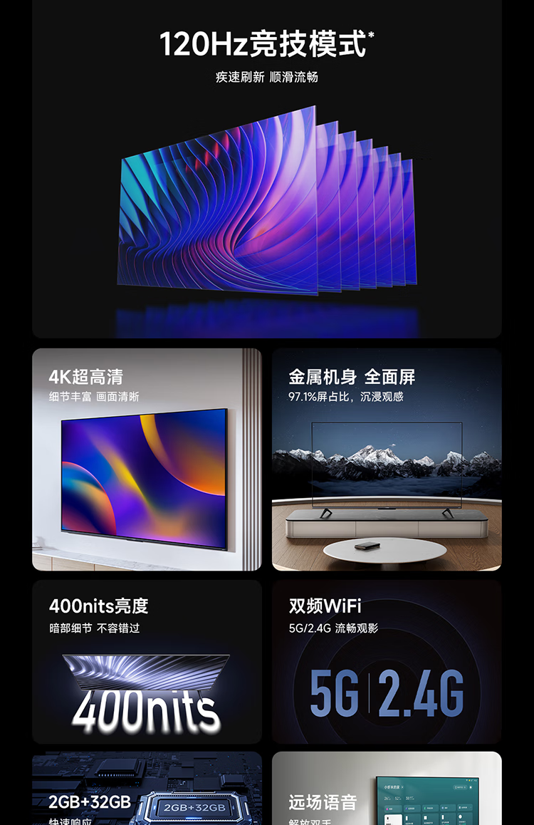 小米 REDMI智能电视 L43MA-AP 4K超高清 3+64GB 43寸 1台