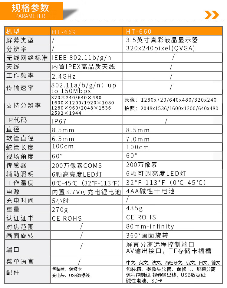 鑫思特 便携工业内窥镜 HT-660 100cm 200万像素 1个