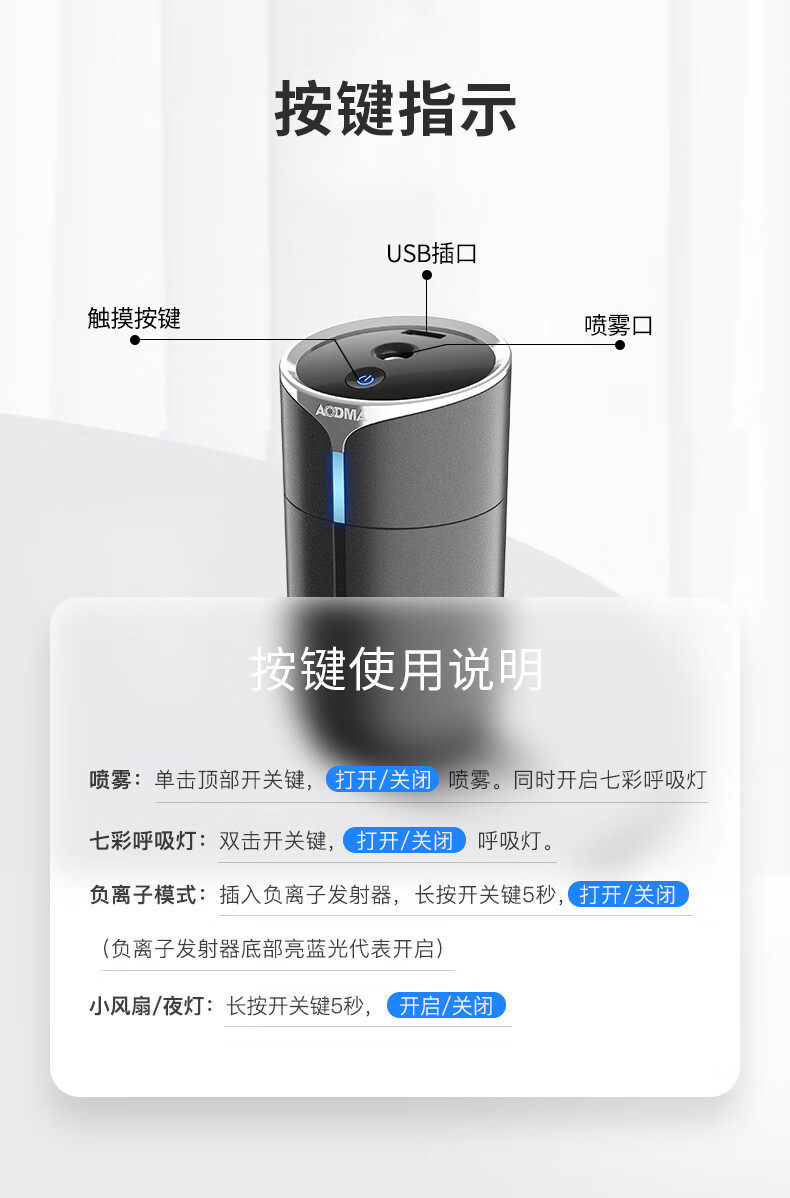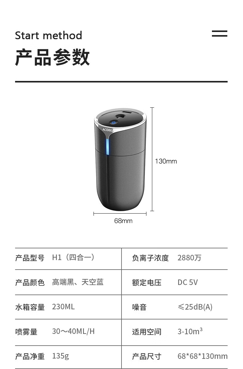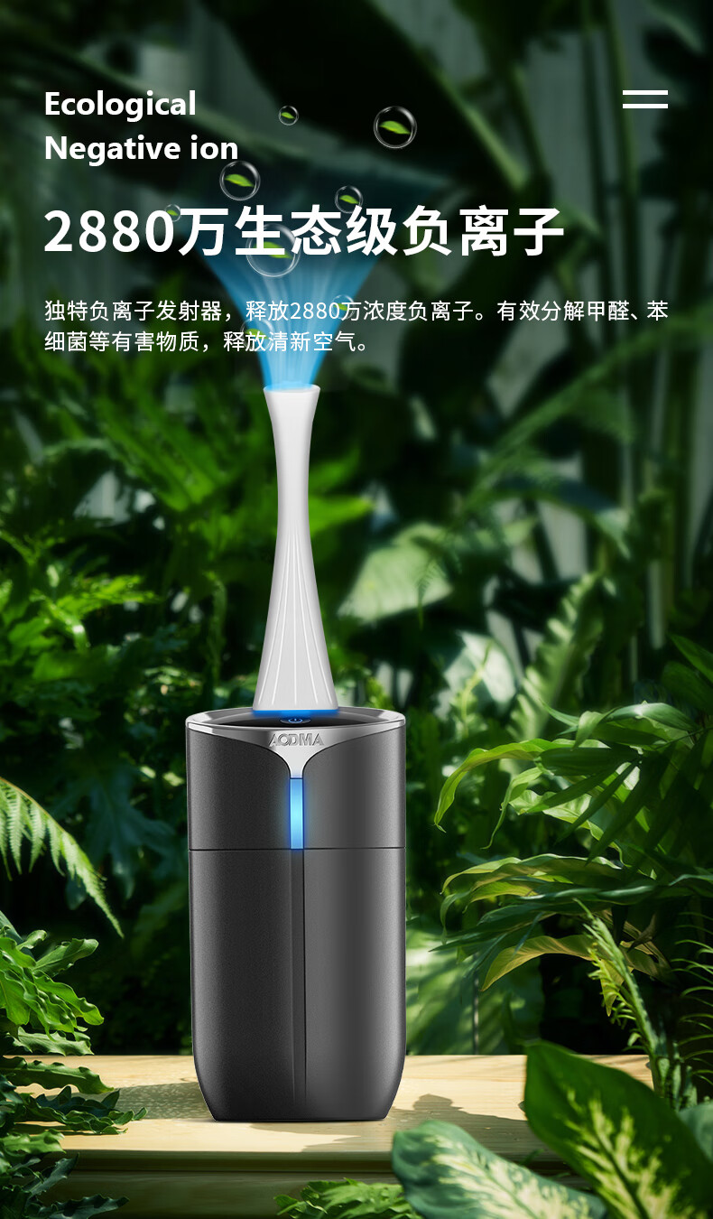 澳得迈 小型桌面空气净化器 H1 三合一 黑色 1个
