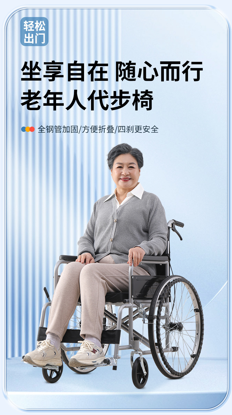 康逻辑 手动轮椅 双软牛津布 98*66*85cm 1辆