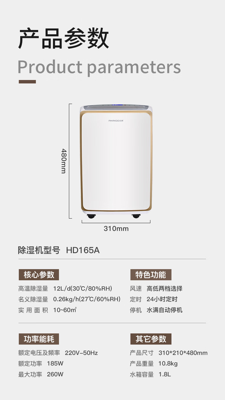百奥 舒美系列家用除湿机 HD165A 310*210*440mm 220V 1台