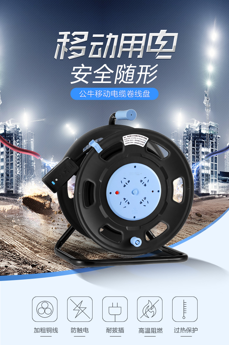 • 商品名称:公牛 单相移动电缆卷线盘