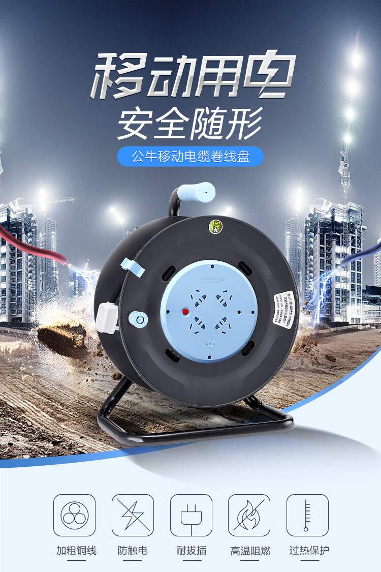 公牛 移动电缆卷线盘 GN-804 50米 4位10A五孔 3×1.5mm²×50m 1个