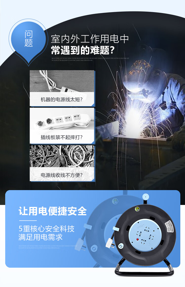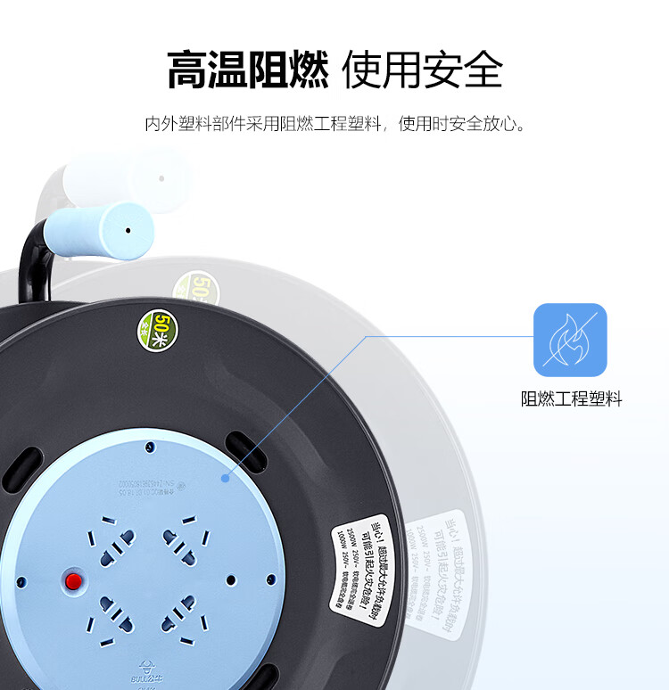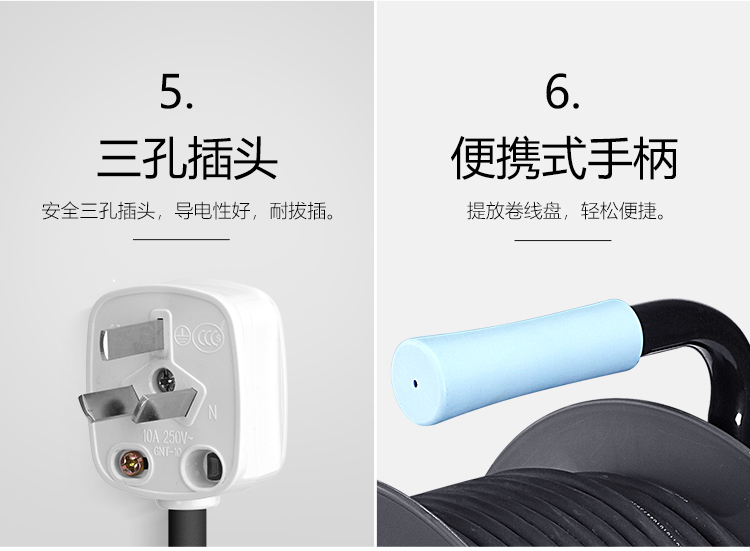 • 规格50米 4位10A五孔 3×1.5mm²×50m
