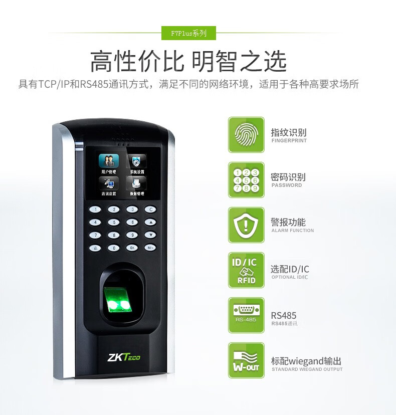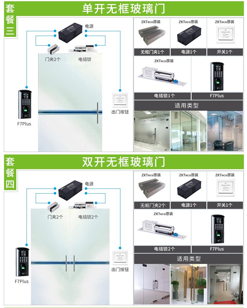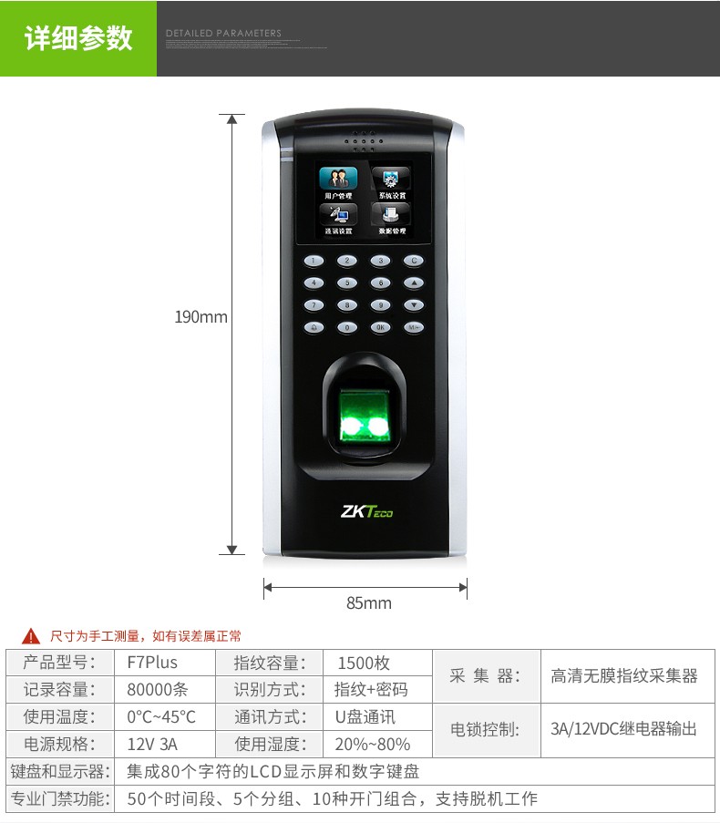 熵基 指纹门禁一体机 F7plus 含3A门禁电源×1+磁力锁×1+ZL支架×1+出门开关(不带暗盒)×1 适用于木门/铁门/防盗 1套