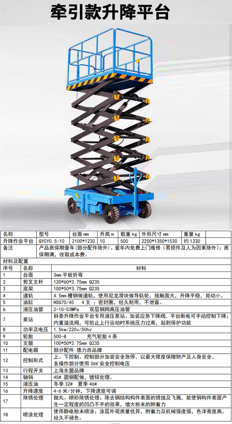 海斯迪克 移动剪叉式升降平台 含卸货 QYCY0.5-10 平台高度10米 电瓶+插电起升 电助力行走 1台