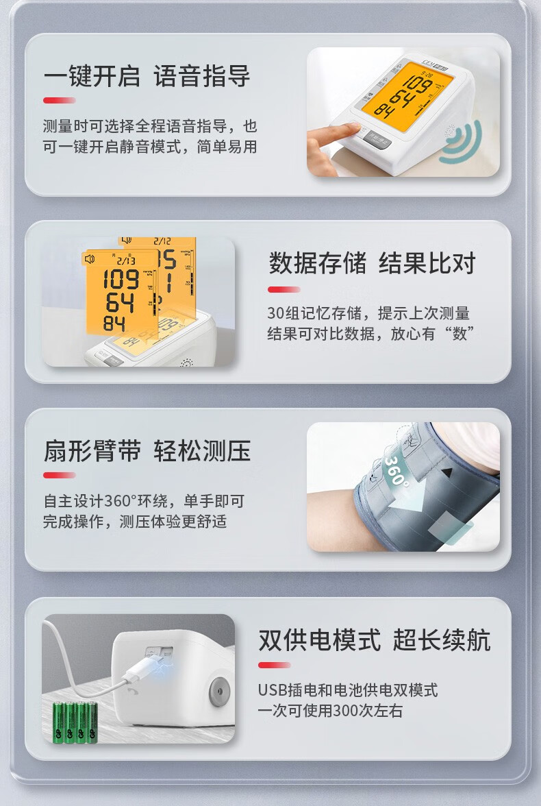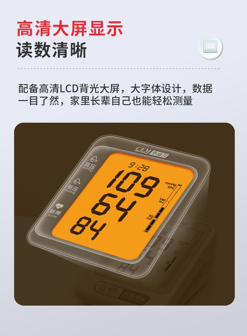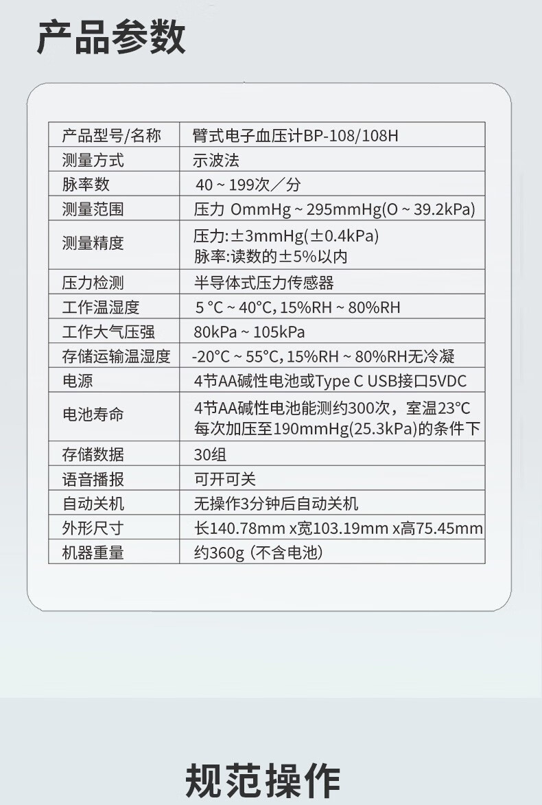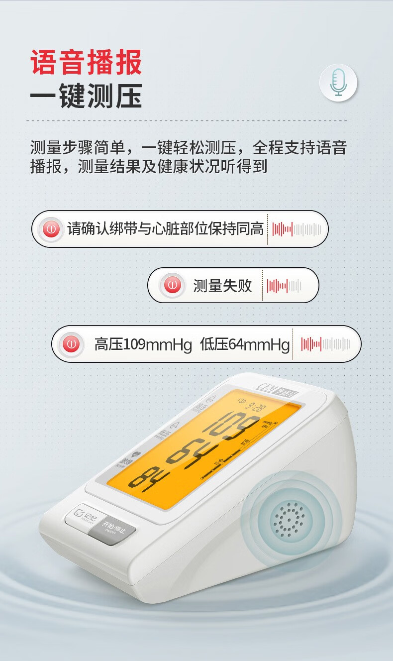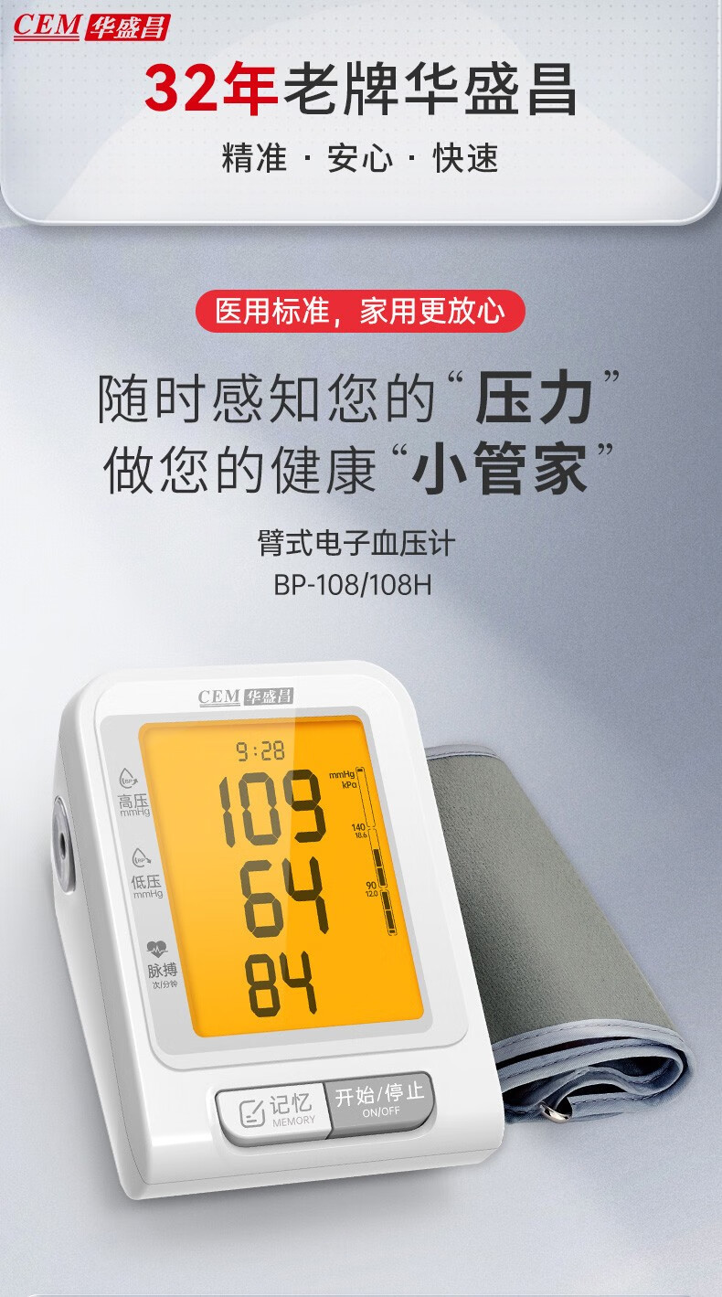 华盛昌 语音播报血压测量仪 BP-108 上臂式 示波法 0-295mmHg ±3mmHg 1个