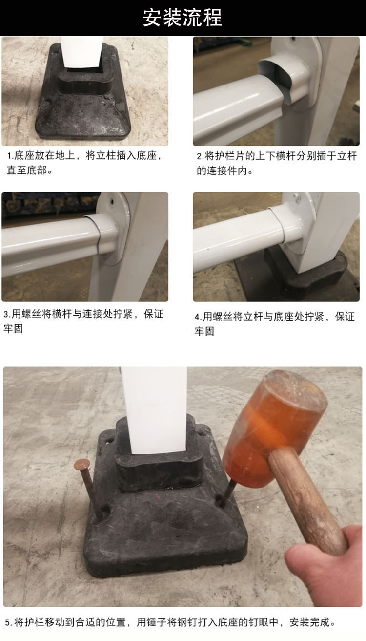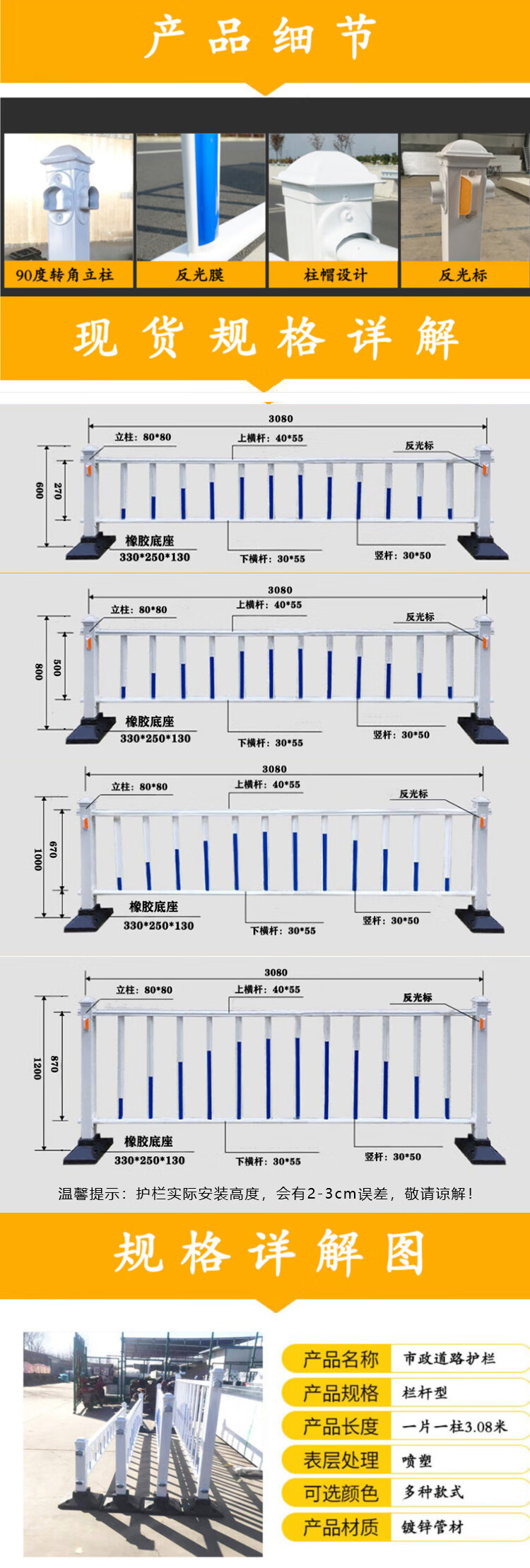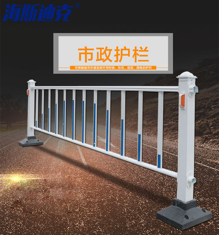 海斯迪克 市政道路护栏 普通款 白蓝色 含护栏×1+立柱×1+橡胶墩子×1+道钉×2+反光标×2 1套 安装高度0.8m 长度3.08m 1套