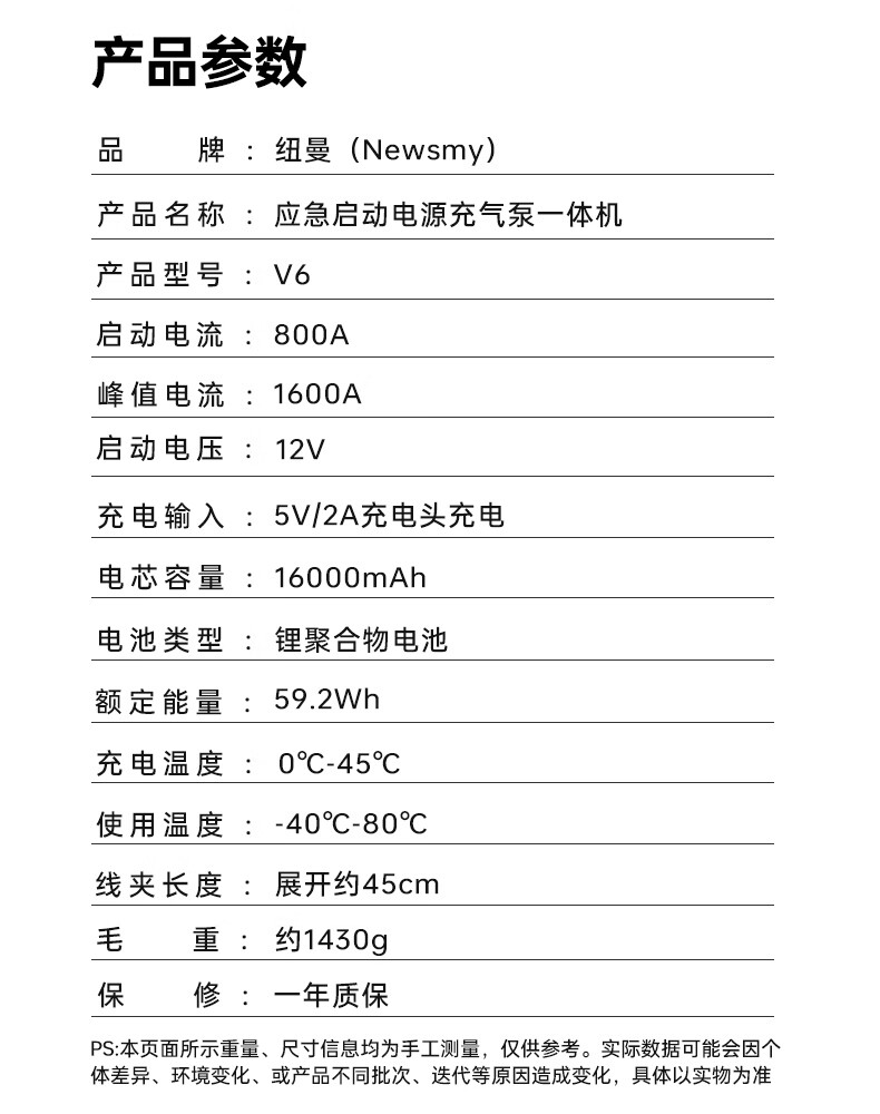 纽曼 电源搭电宝 V6 1600mAh 12V 1个