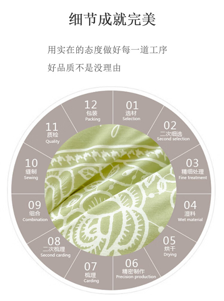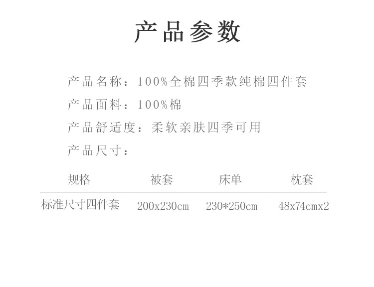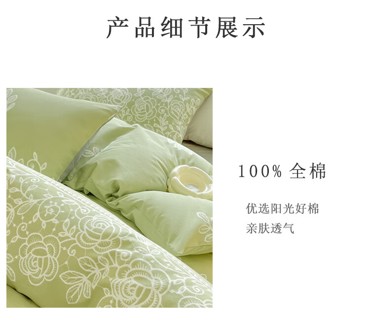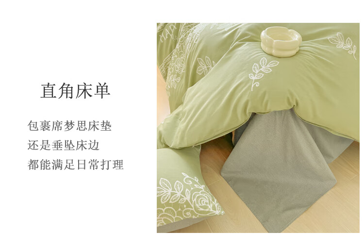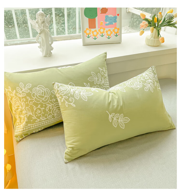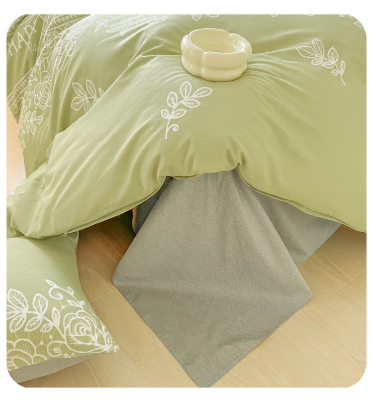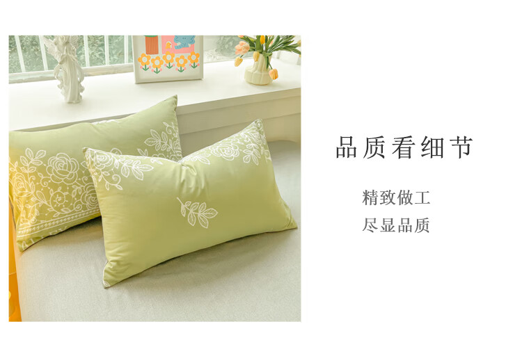 逸轩 全棉小清新四季款四件套 绿色心情 被套200×230cm+床单230×250cm+枕套48×74cm×2 1套