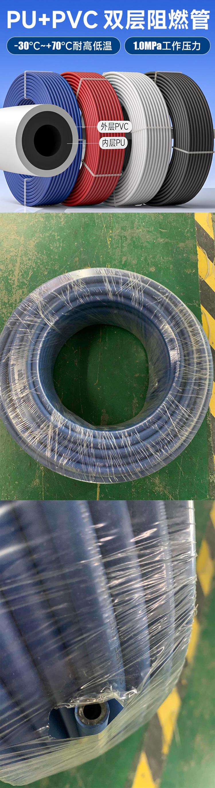 台湾山耐斯TWSNS 双层阻燃耐高温气管 ZR6*4 100M 蓝色 1卷