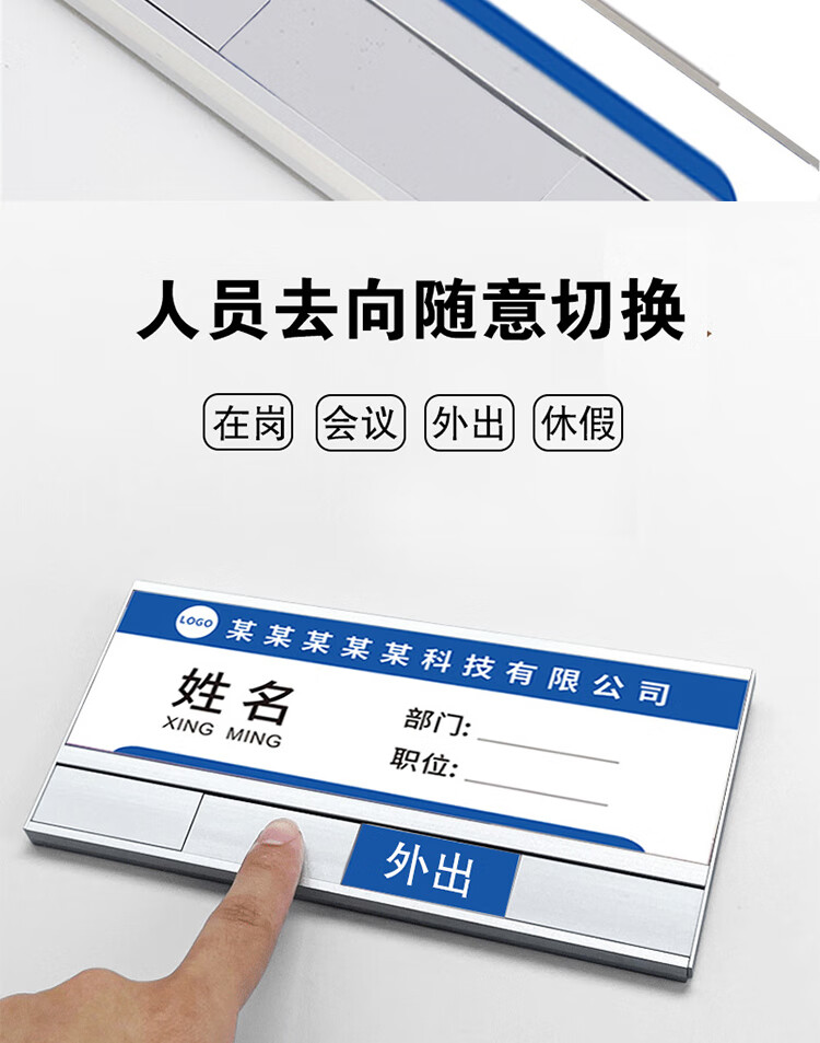 赫思迪格 员工职位状态去向牌 HGJ-678 14*9CM 铝合金平贴款 1个