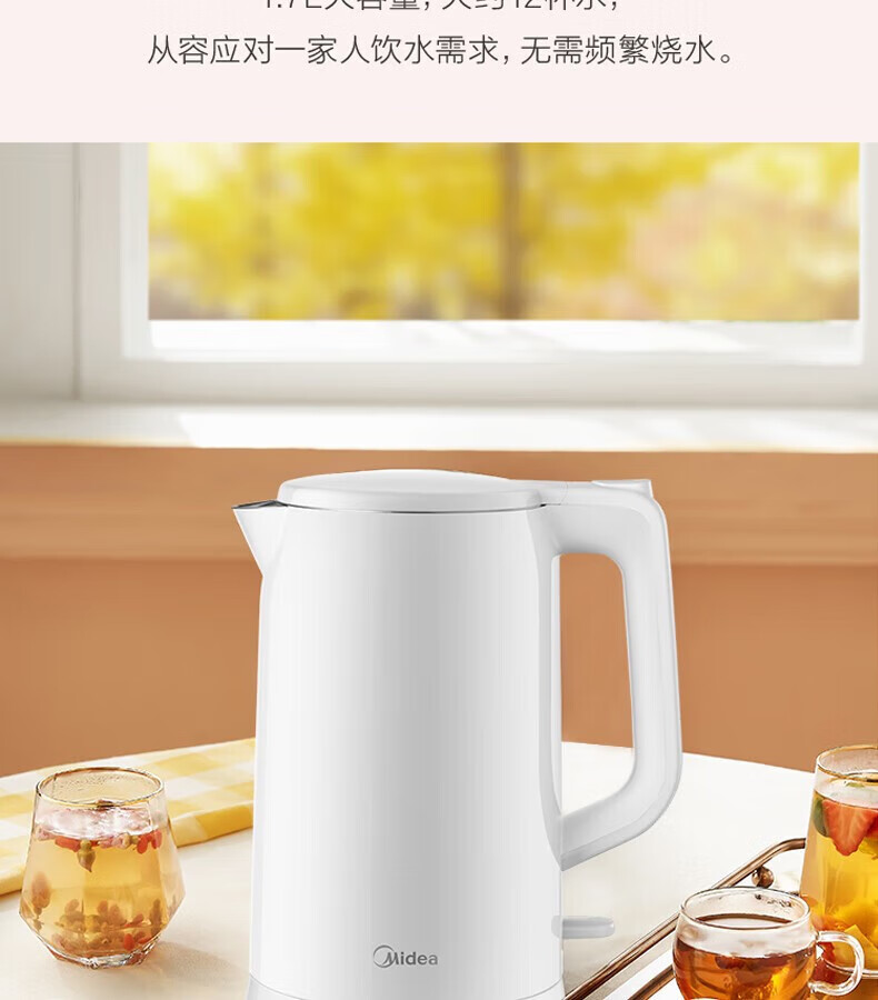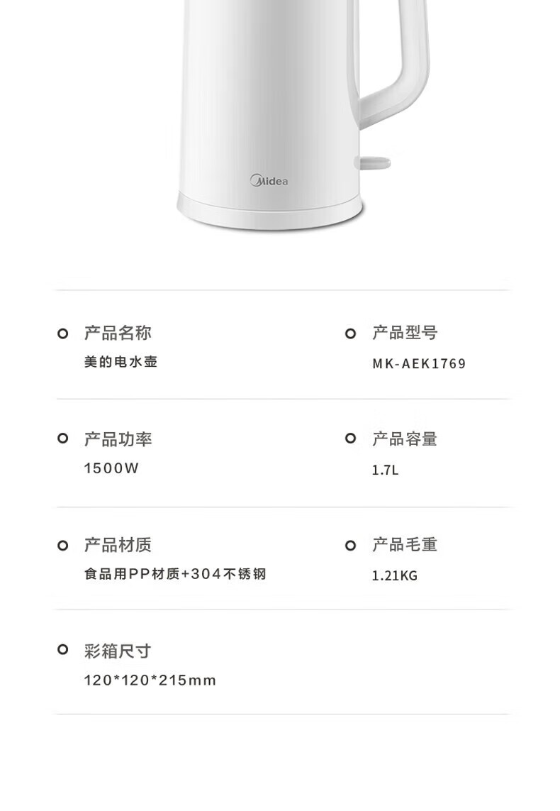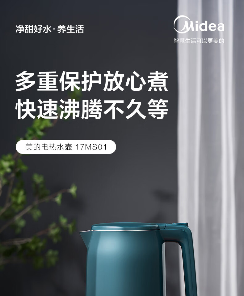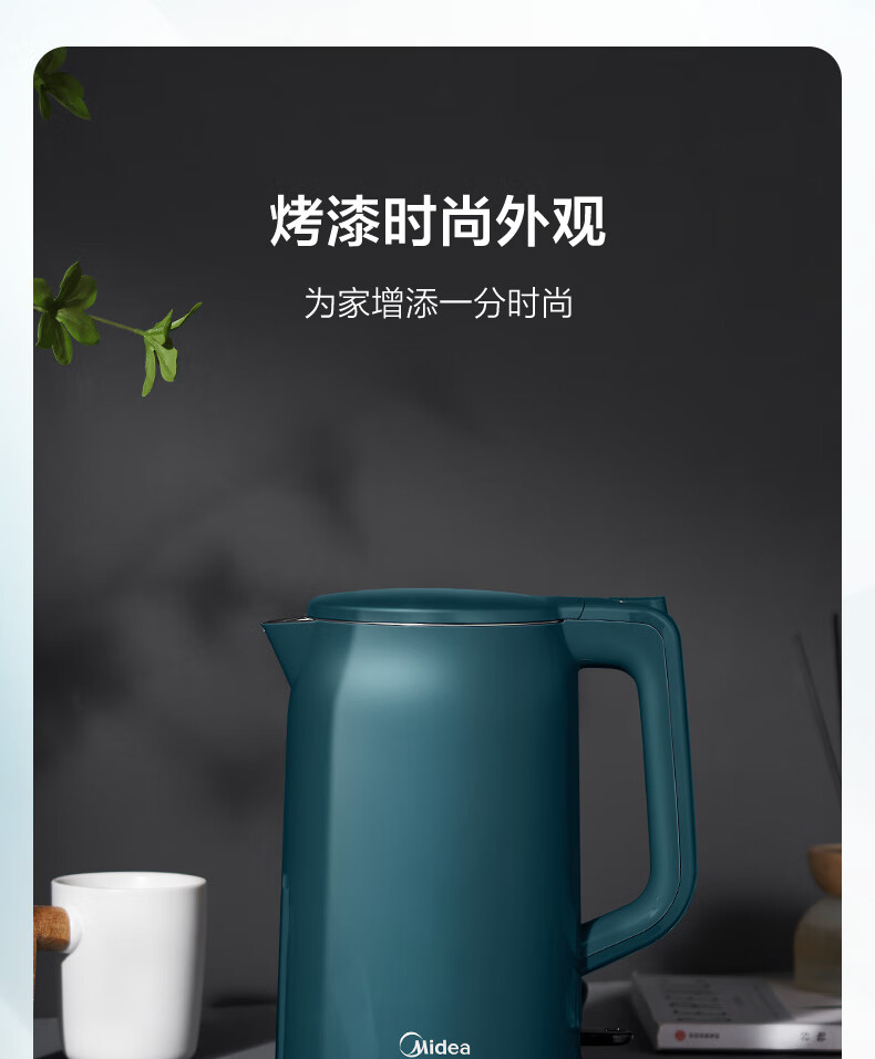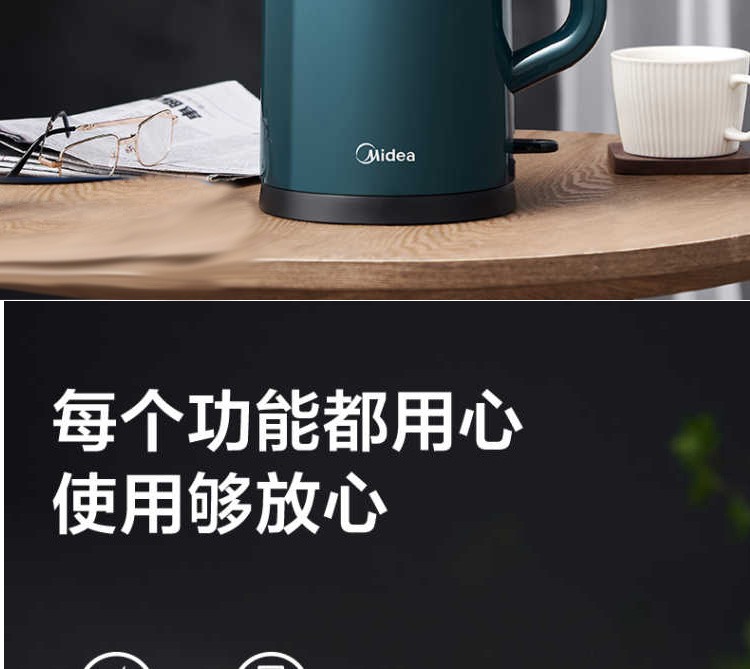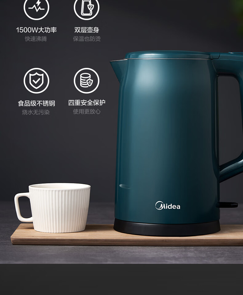 美的 电热水壶 MK-17MS01 1.7L 绿色 1个