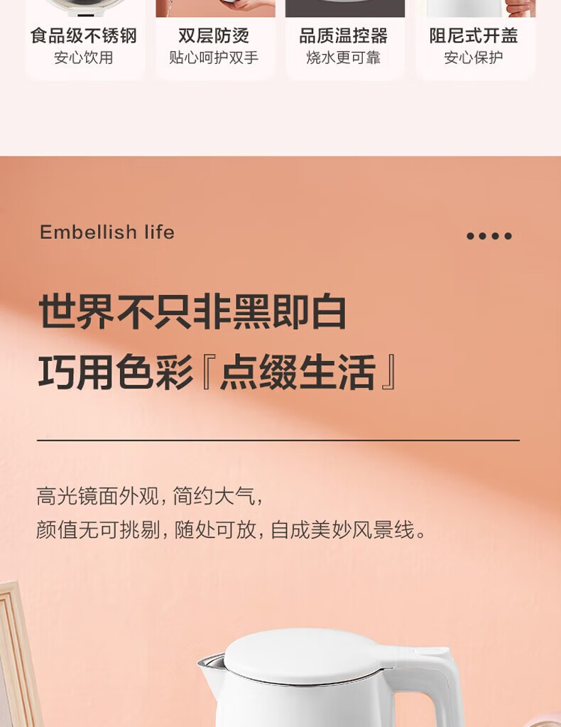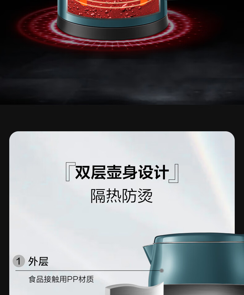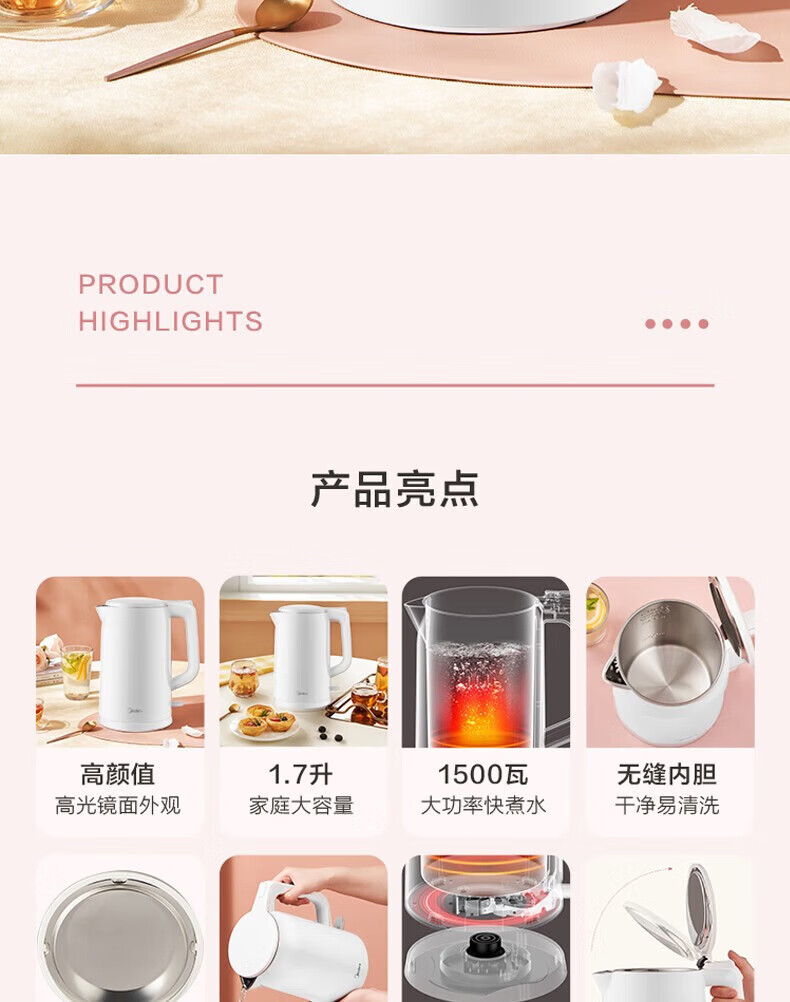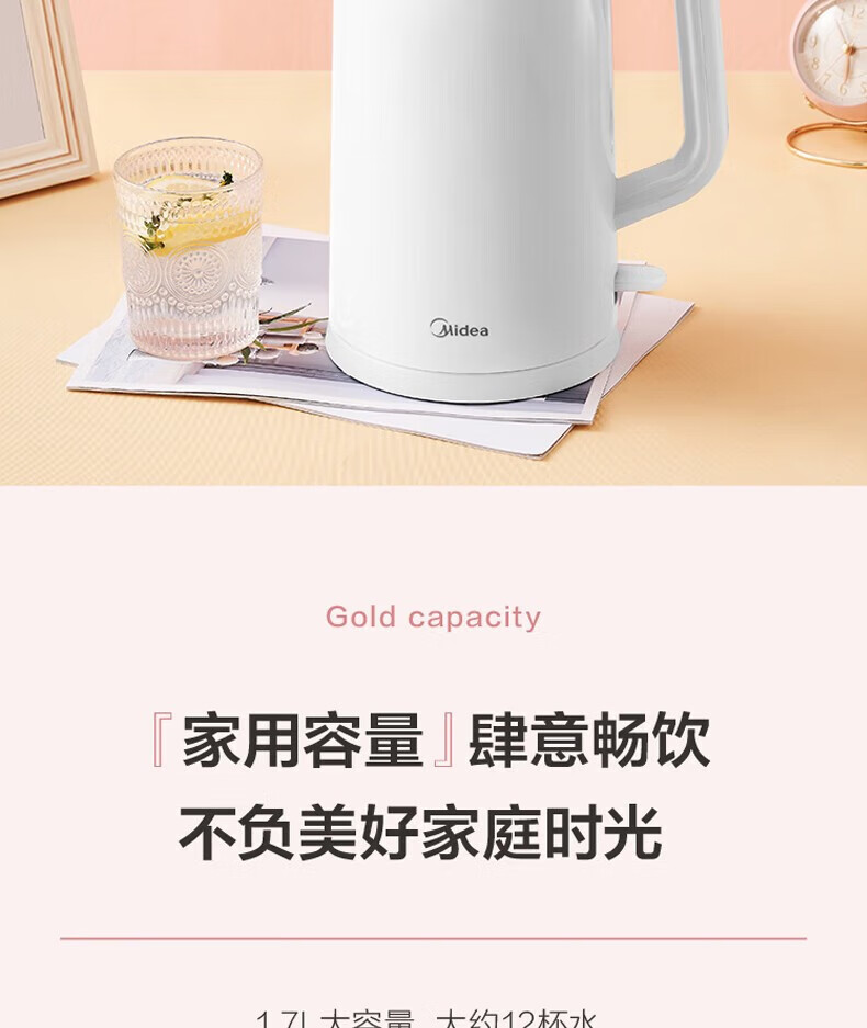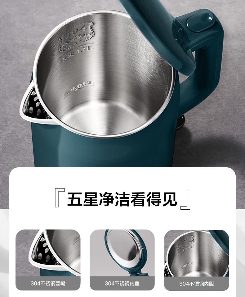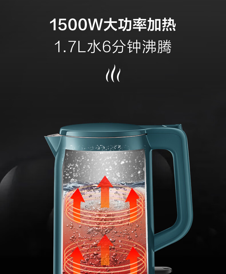 美的 电热水壶 MK-17MS01 1.7L 绿色 1个