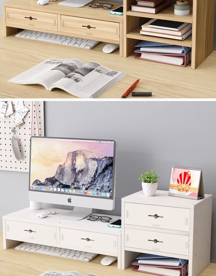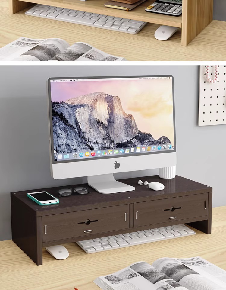 海斯迪克 电脑显示器屏增高架 双层隔断+三层黑胡桃(2抽屉) 1套