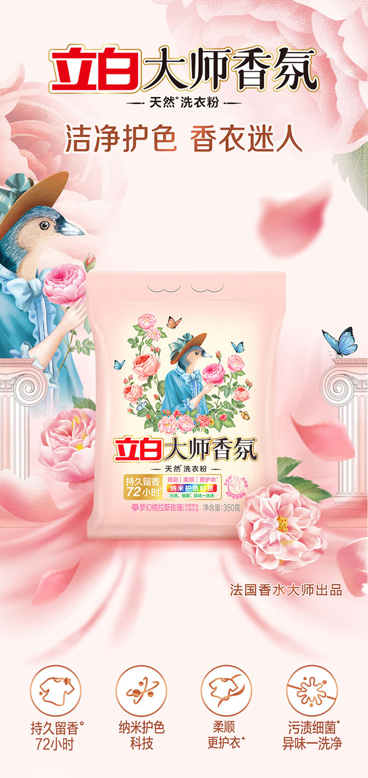 立白 大师香氛洗衣粉(玫瑰) 350g 3袋 1件