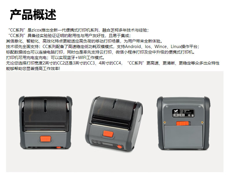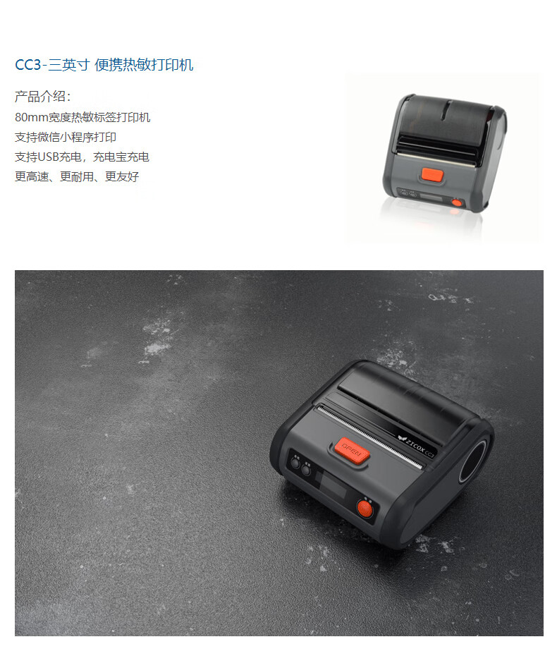 芝柯 热敏打印机 CC3 便携式蓝牙双模80mm纸款 3寸便携 标签+票据 1台