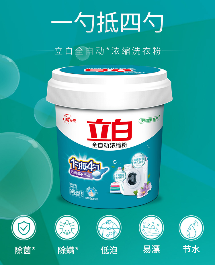 立白 全自动浓缩粉 低泡易漂大袋留香 1800g 1桶
