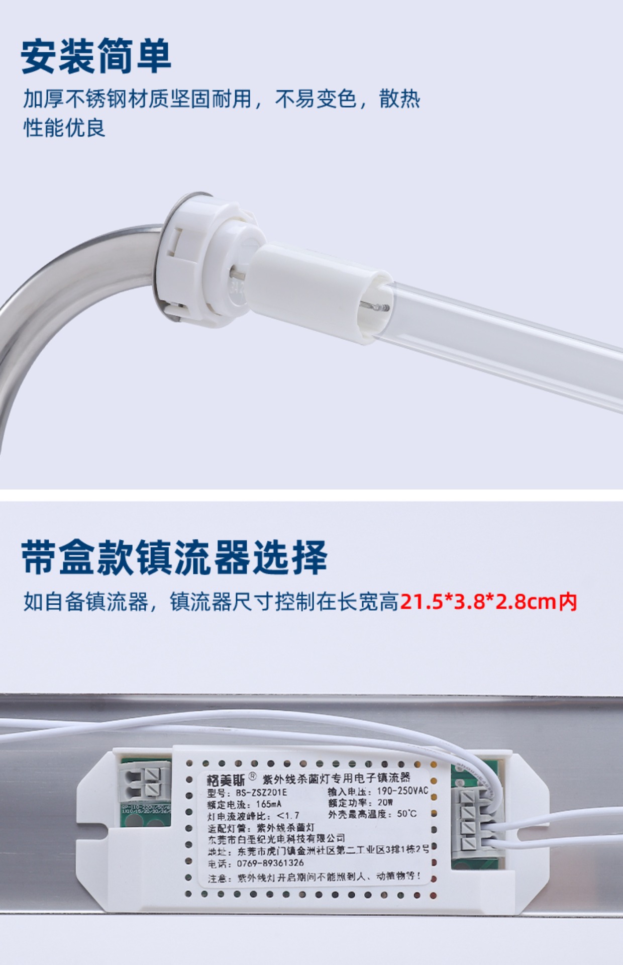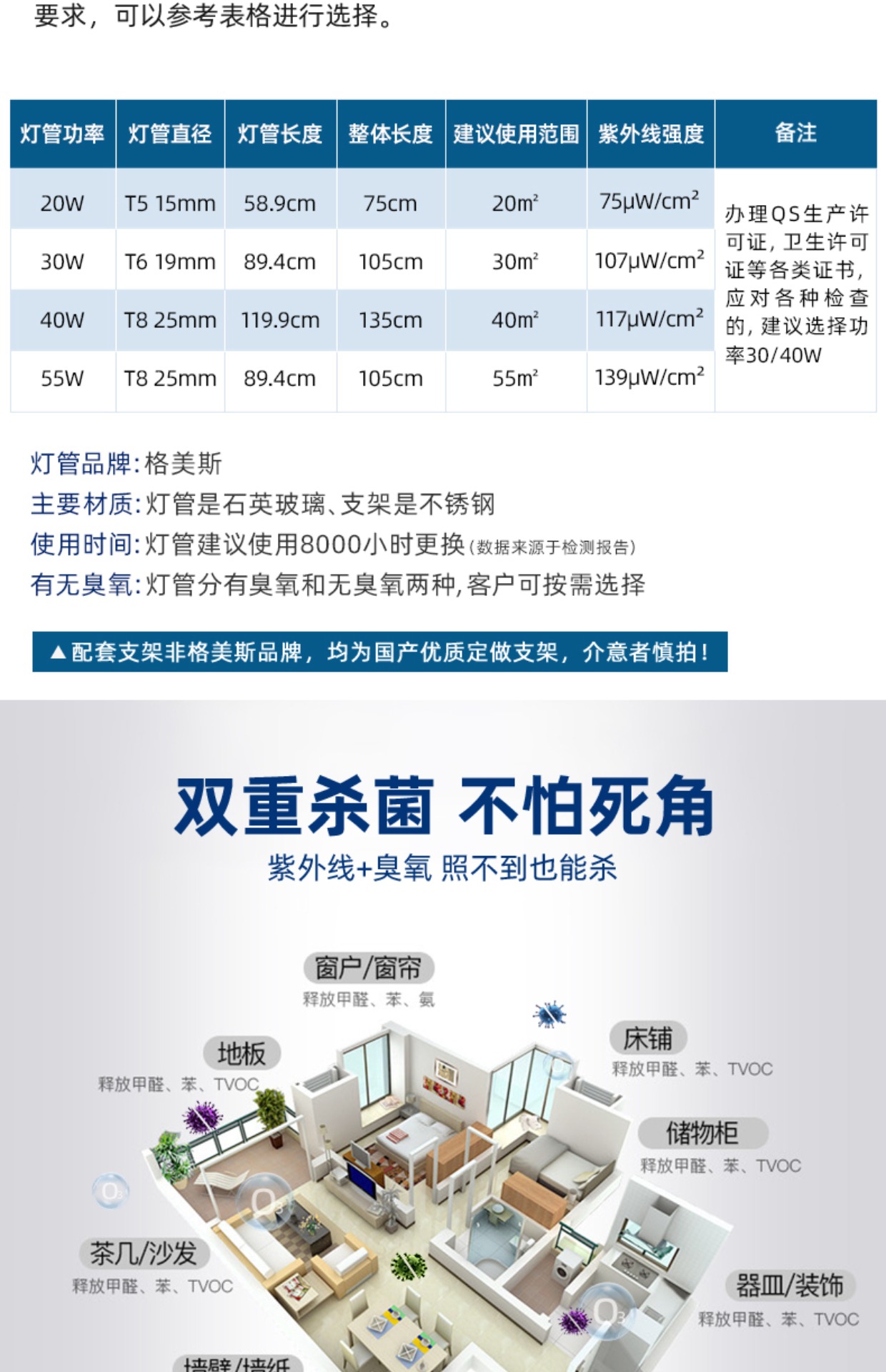 格美斯 紫外线消毒灯 40W 【带盒】有臭氧+不锈钢支架+镇流器 医用级 1件