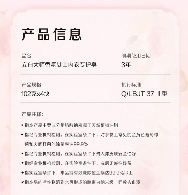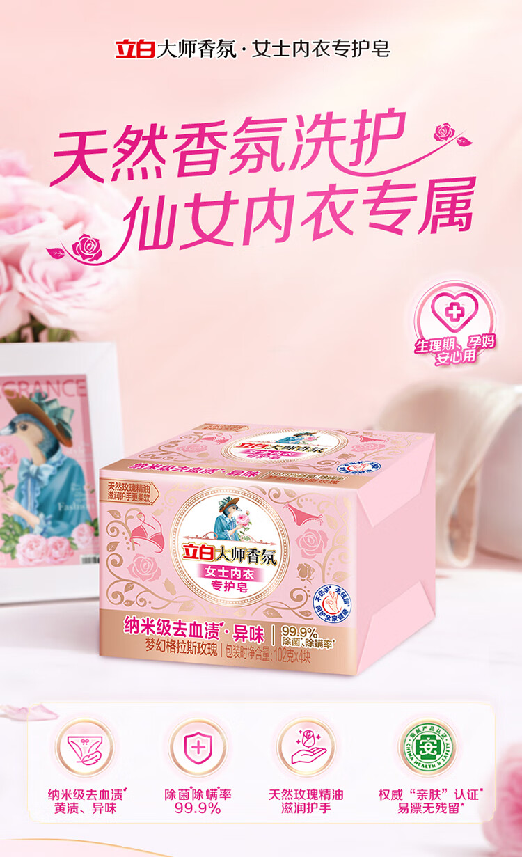 立白 大师香氛女士内衣专护皂 玫瑰 102g*4 1件