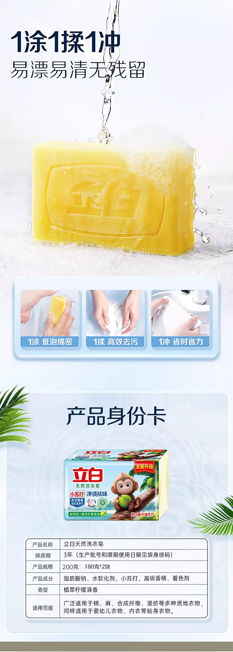 立白 天然洗衣皂(植萃柠檬清香) 200g*2 1件