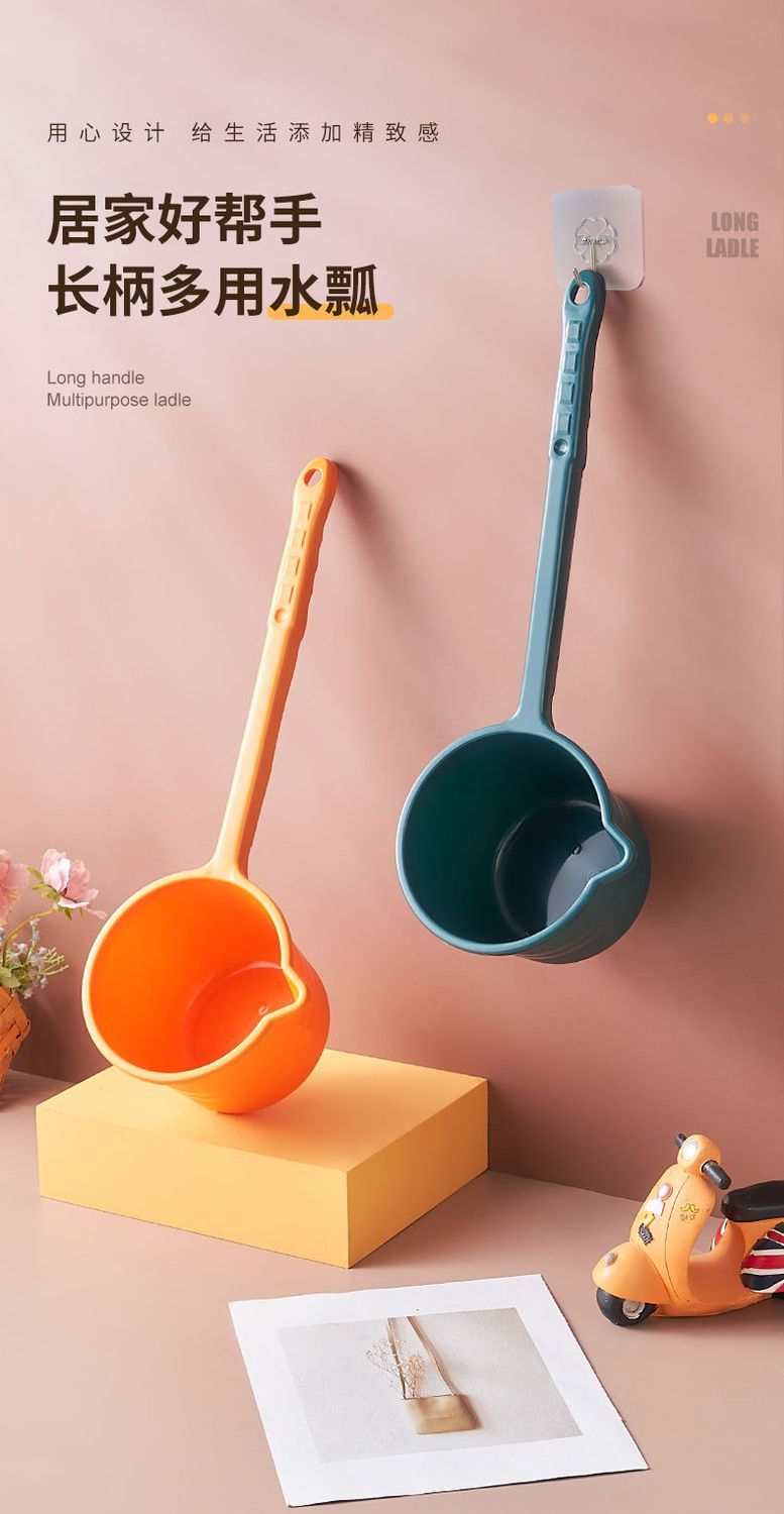 海斯迪克 长柄塑料水勺 蓝色 加长加深 1个