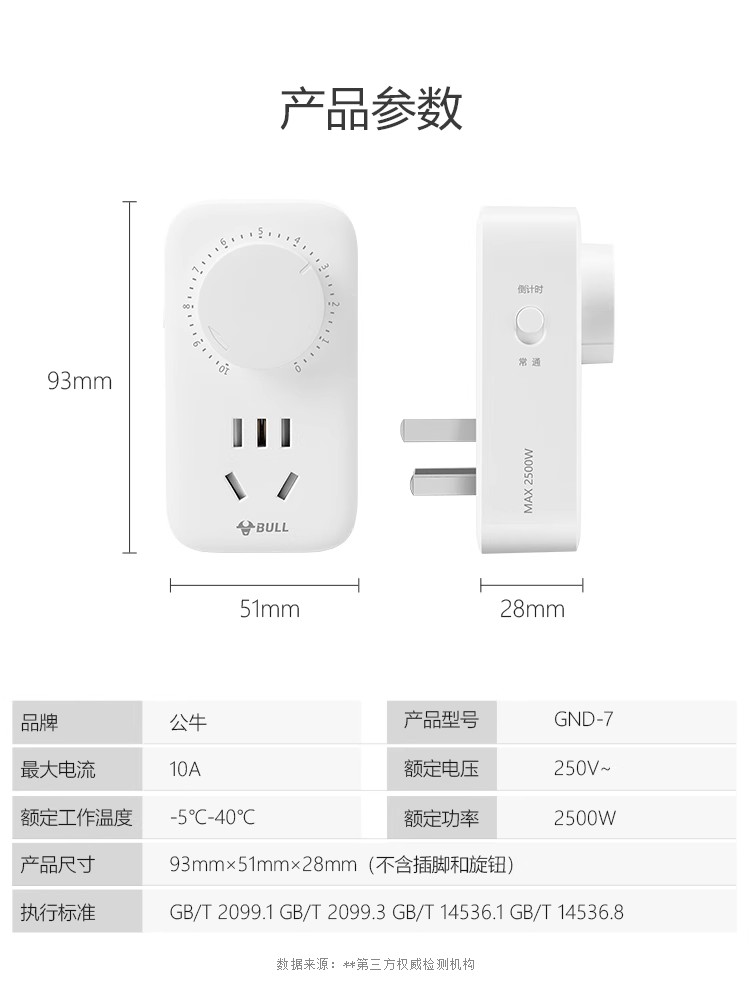公牛 定时器机械式开关插座 GND-7 2500W 10A 1个