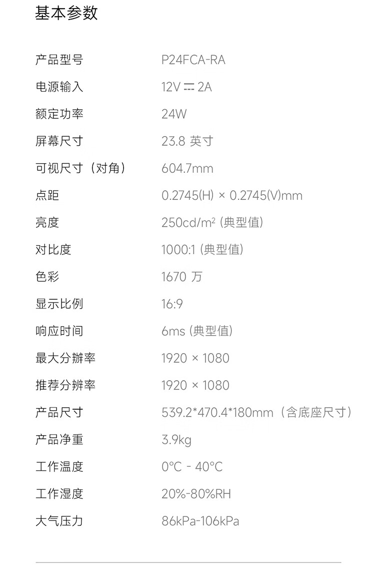 小米 Redmi显示器 P27QCB-RA 23.8英寸 A24 多功能支架版 1台