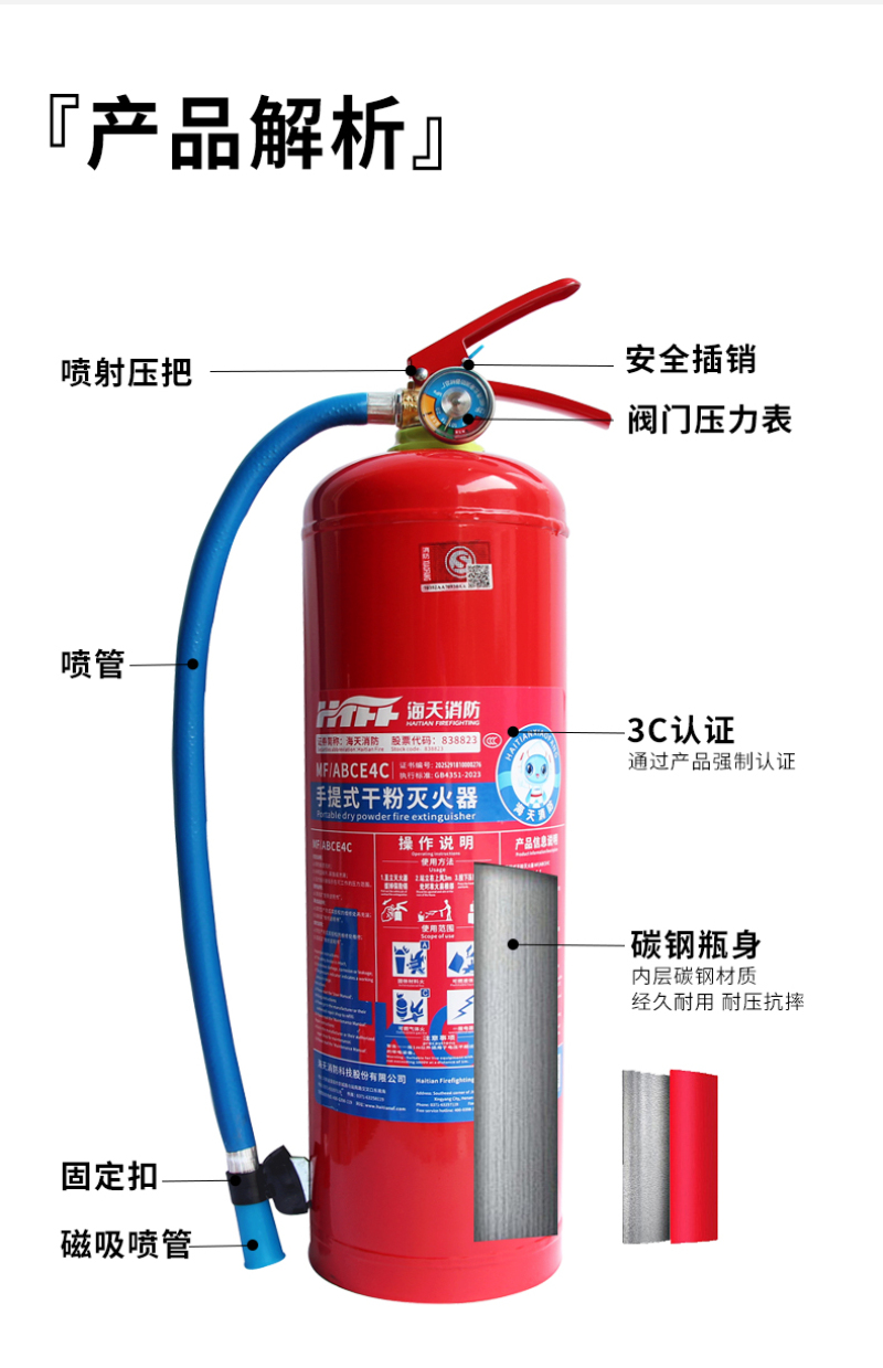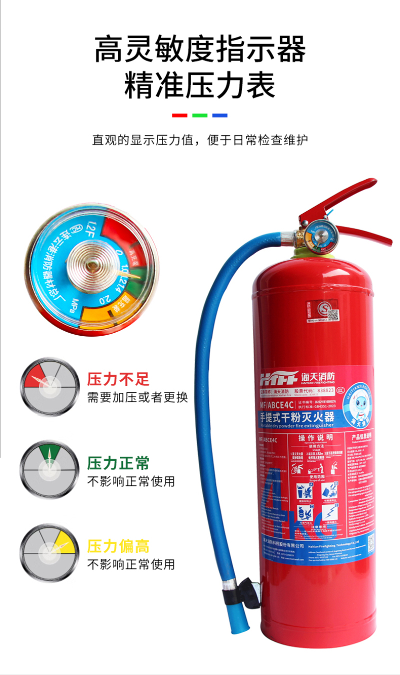 海天消防 手提干粉灭火器 MF/ABCE4 25年新国标4kg 1个