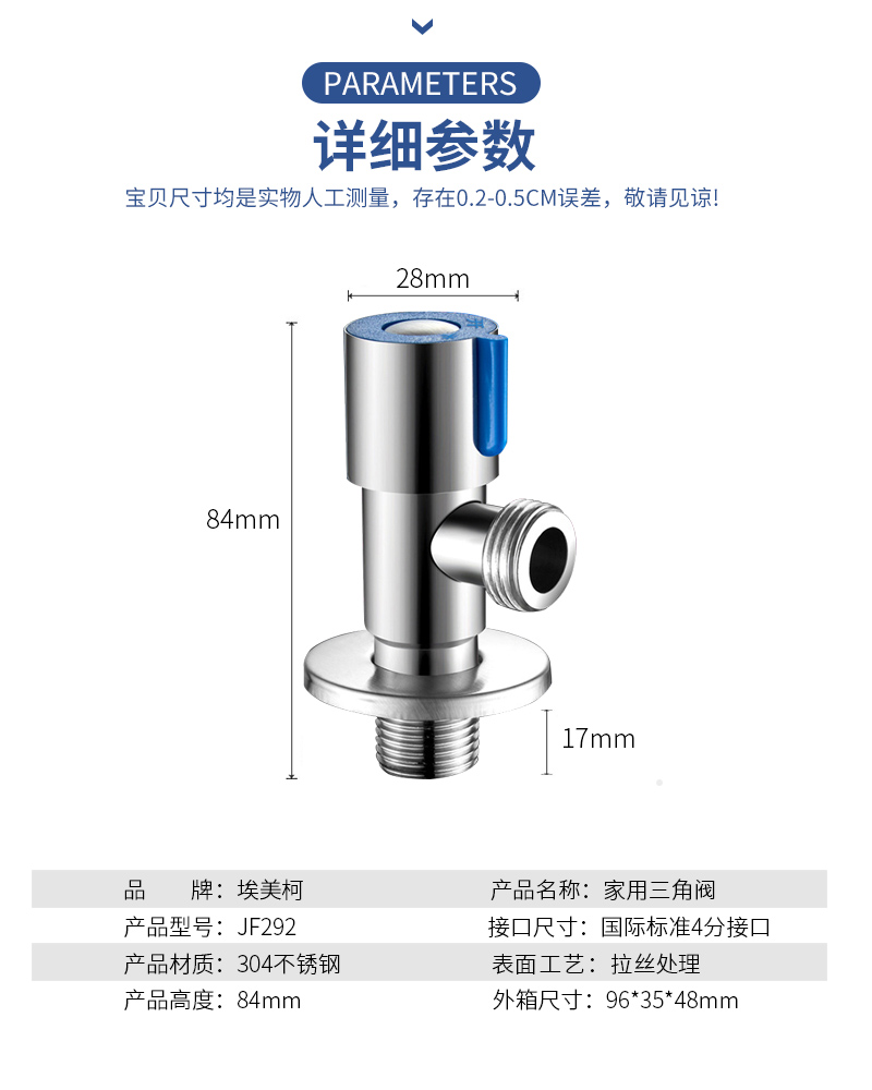埃美柯 304不锈钢热角阀 84×28mm 1个