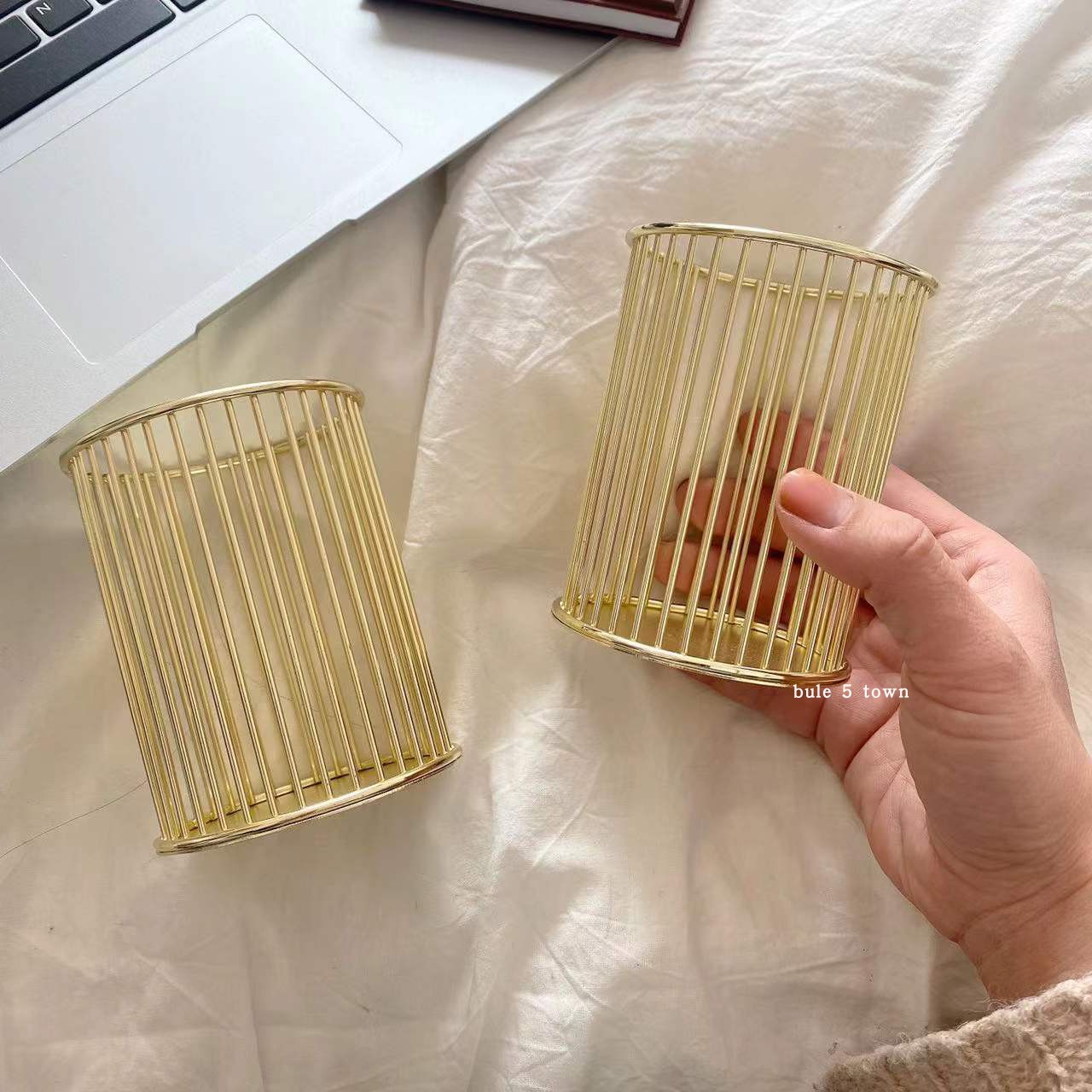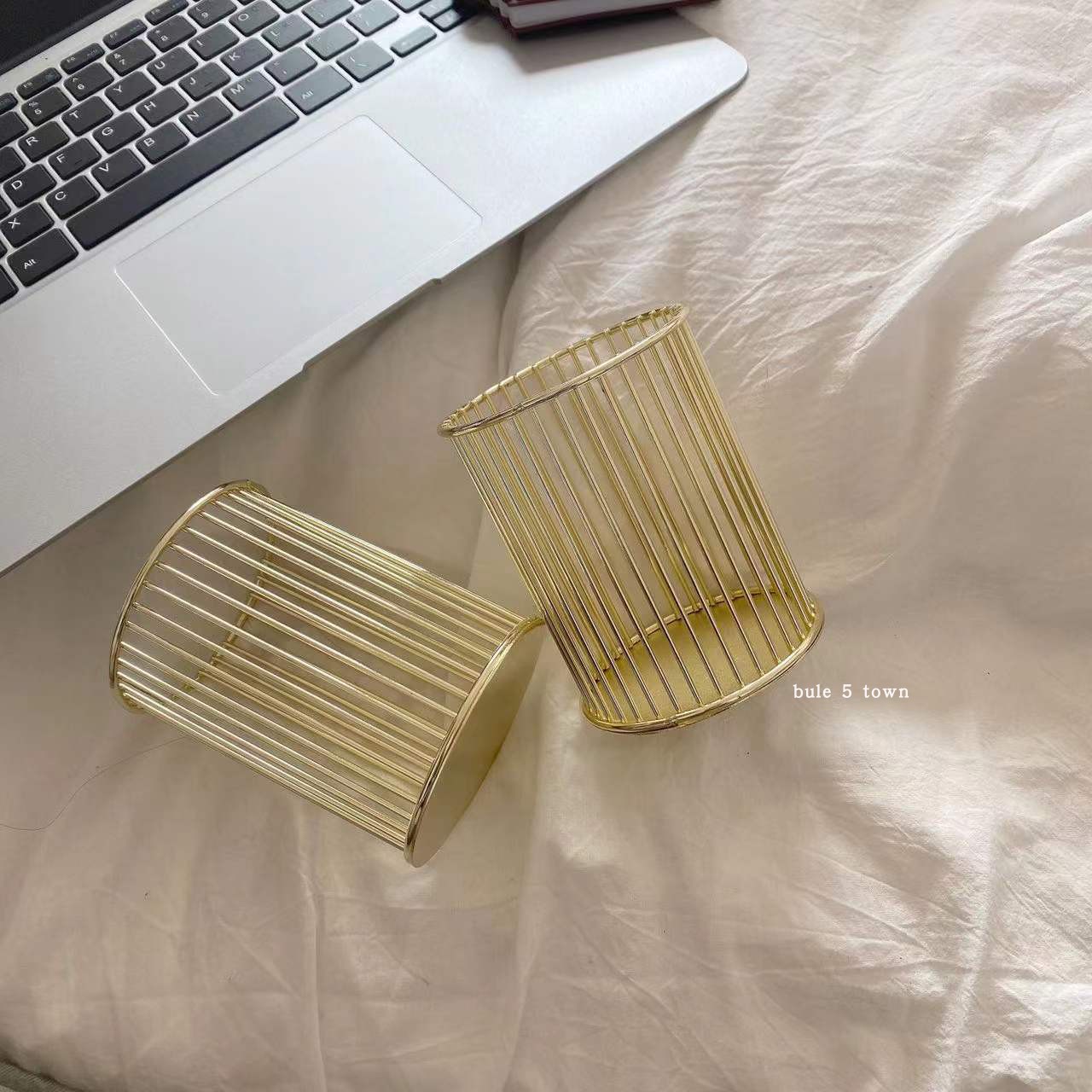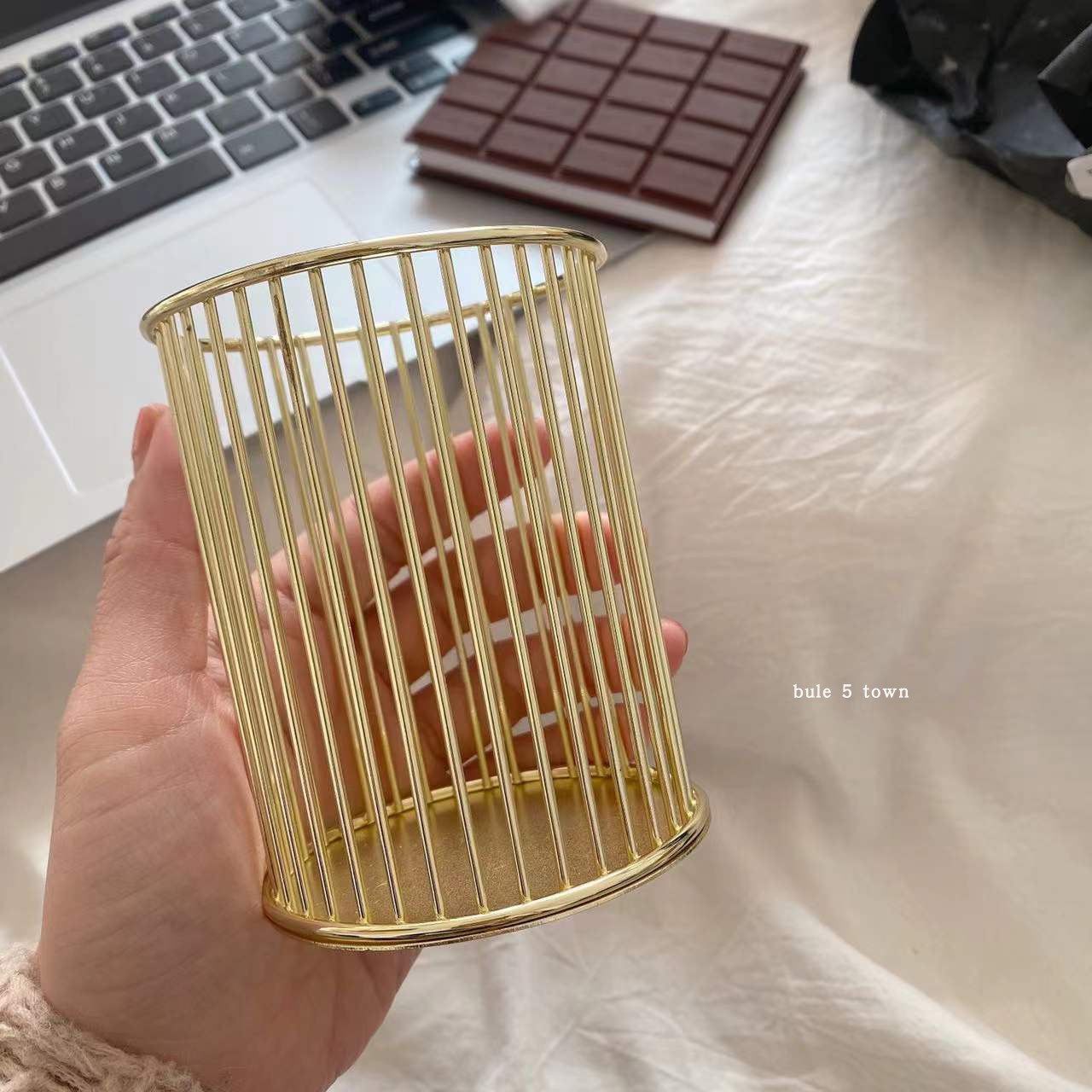 海斯迪克 金色笔筒收纳桶 10*8cm 1个