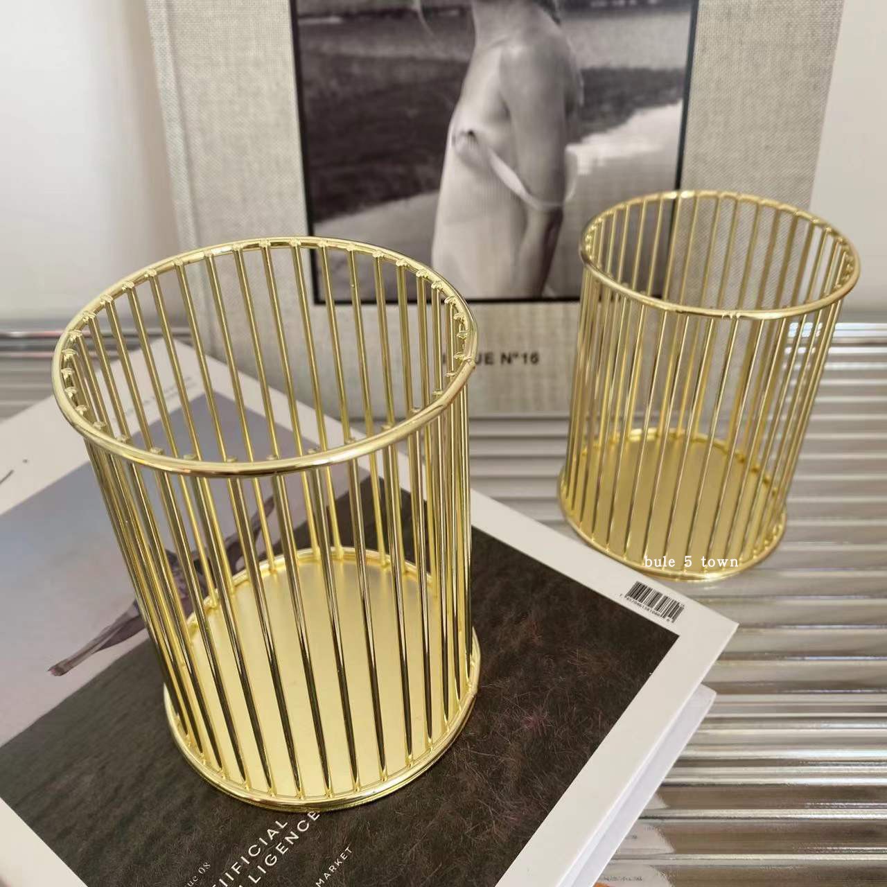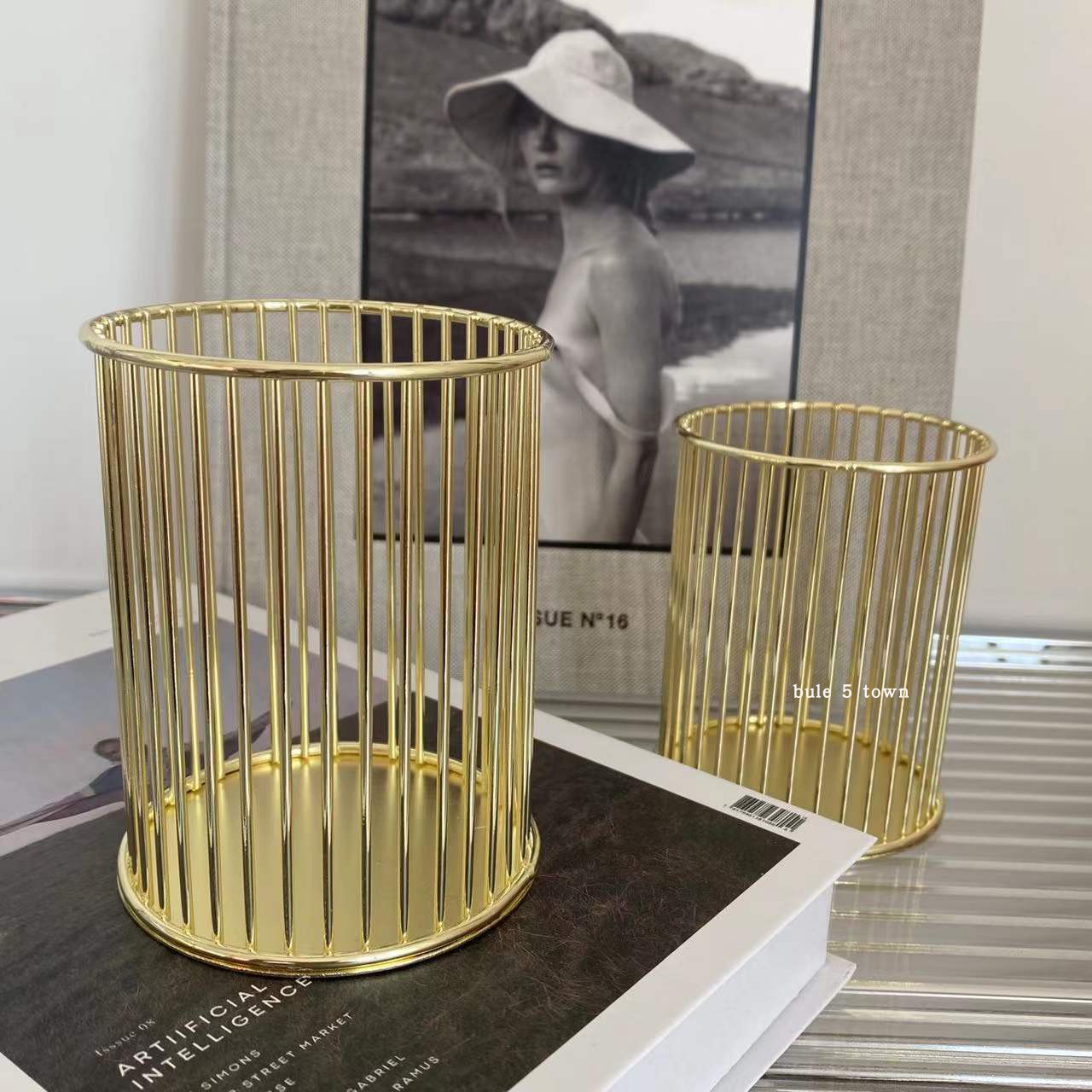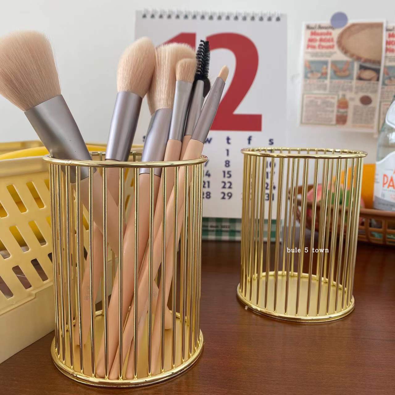 海斯迪克 金色笔筒收纳桶 10*8cm 1个