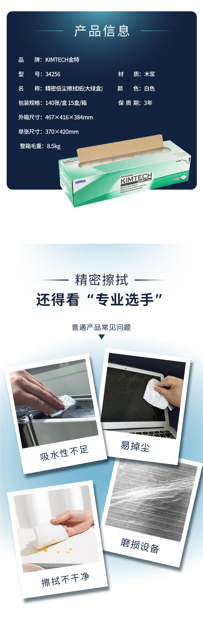 金佰利 低尘擦拭纸 34256 370*420mm 140张*15盒 1箱