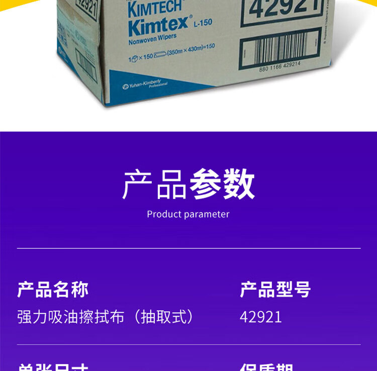 金佰利 吸油擦拭布 42921 抽取式 43*35cm 150张 1箱