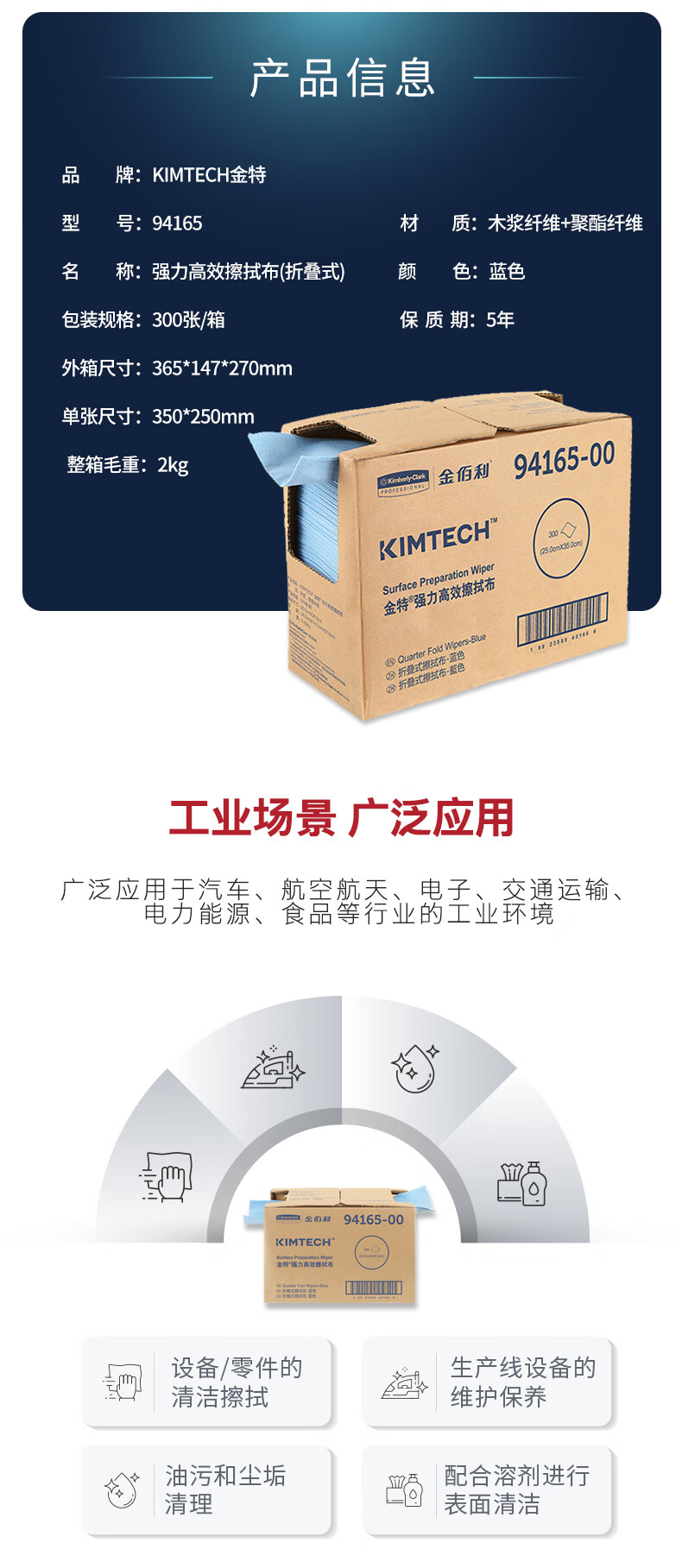 金佰利 折叠式工业擦拭布 94165 蓝色 250×350mm 300张 1箱