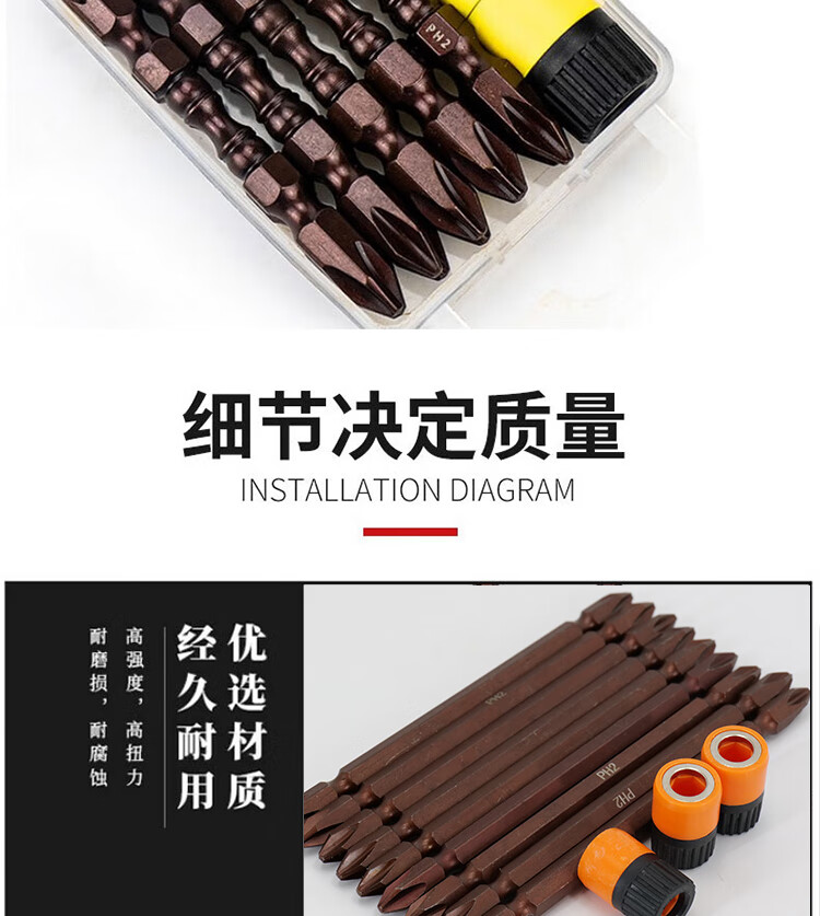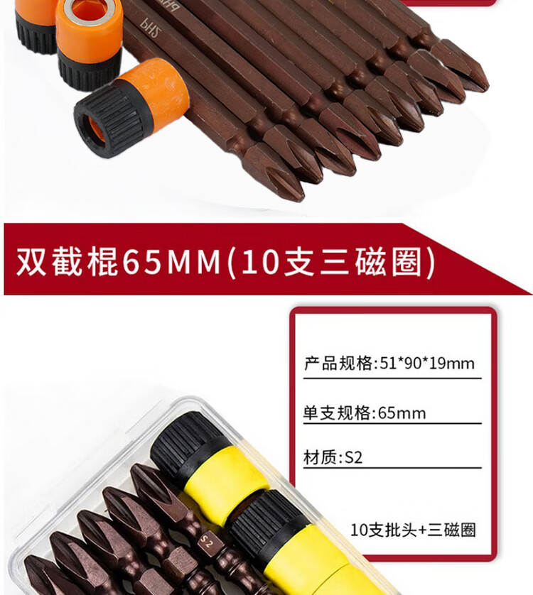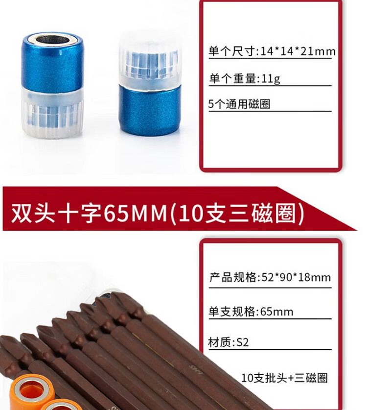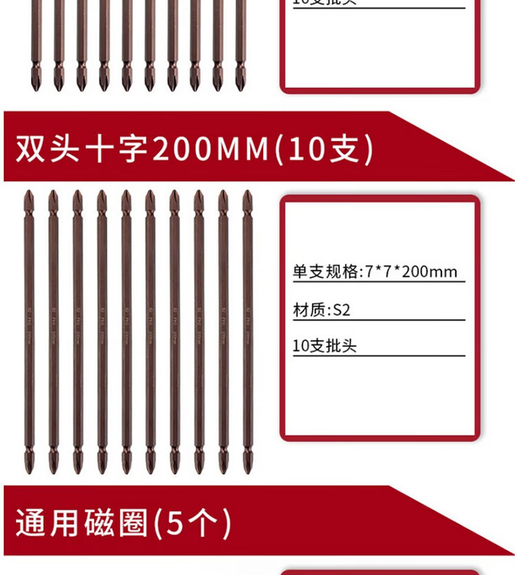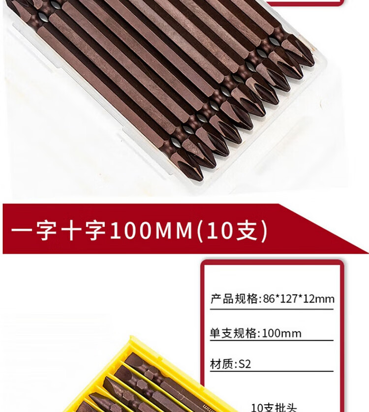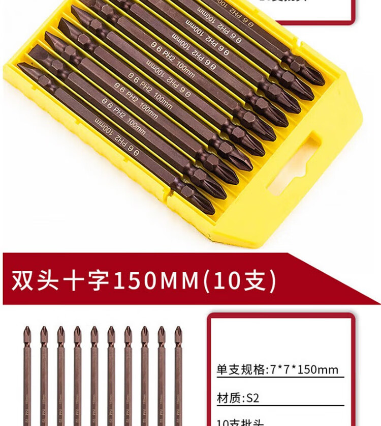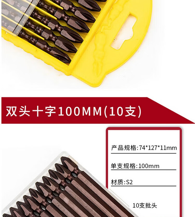 优麦达 强磁风批头套装 YL10 强磁100mm 双头十字 10支 1套