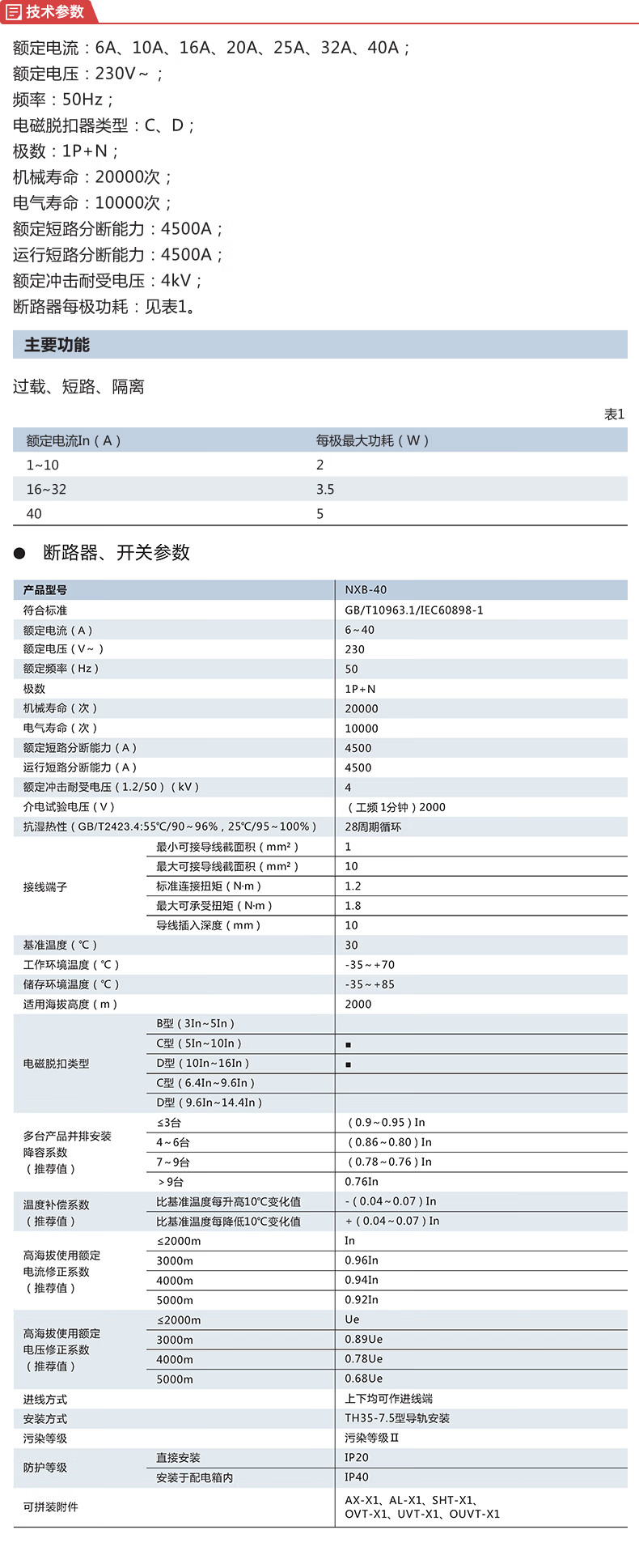 正泰 小型断路器 NXB-40 1P+N C 25A 4.5kA 1个